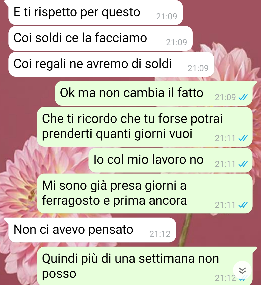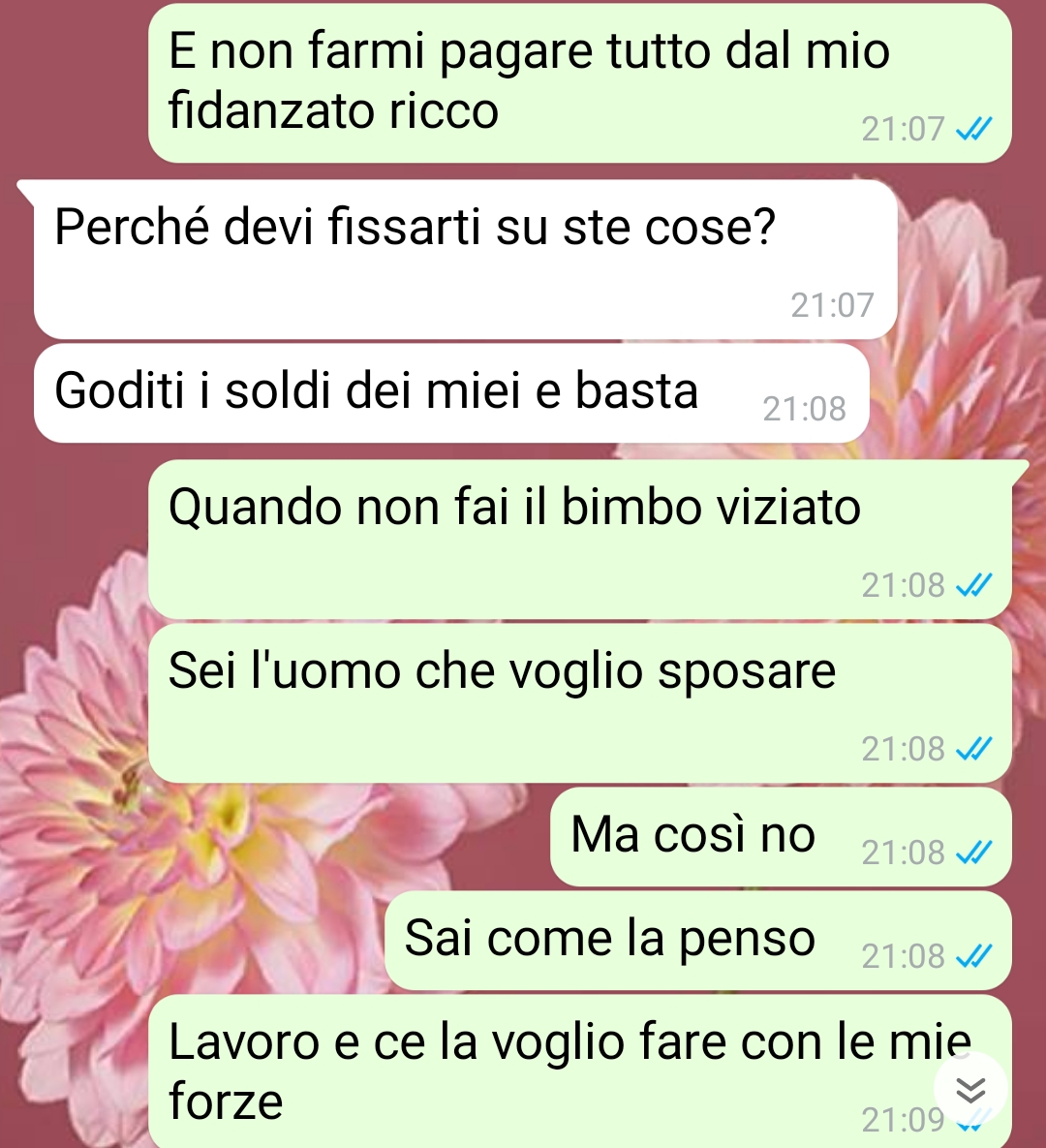 La nostra fan evidenzia di aver scelto, forse con ingenuità, di voler mantenere una certa indipendenza economica anche nell’organizzazione del matrimonio e del viaggio di nozze. Per lei era importante contribuire in modo autonomo, senza gravare sulla famiglia di lui o approfittare delle possibilità economiche del compagno. Tuttavia, proprio questa differenza di condizioni avrebbe dato origine ai primi contrasti significativi.