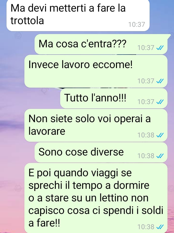 La lite più recente, racconta, è avvenuta proprio prima della sua partenza per un viaggio con un’amica. Invece di salutarla con affetto o augurarle buon viaggio, il ragazzo ha reagito in modo brusco e freddo, arrivando addirittura a litigare con lei per un motivo che, secondo la nostra fan, è del tutto assurdo: il suo modo di viaggiare.
