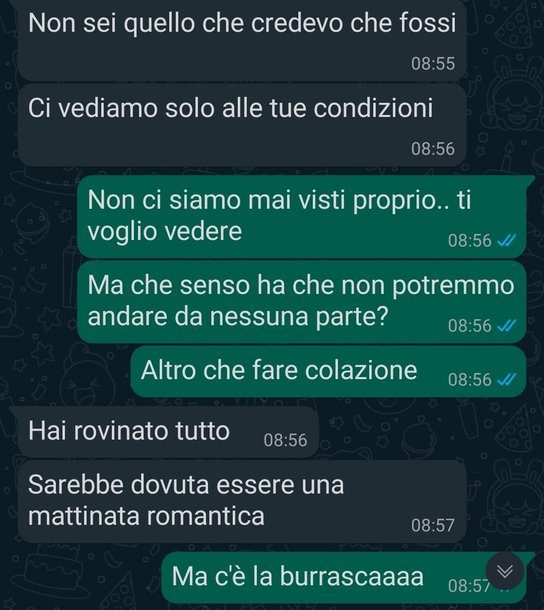 Anche lui, d’altronde, non voleva affrettare le cose. Era consapevole dei rischi che si corrono conoscendo persone online e preferiva prendersi del tempo per capire chi fosse davvero Alba. Lo scambio di messaggi era diventato quotidiano, i toni affettuosi e il dialogo sembrava promettere qualcosa di bello. Per un po’ tutto sembrava procedere nella giusta direzione.
