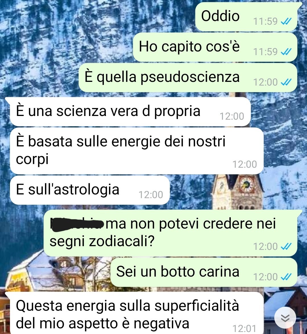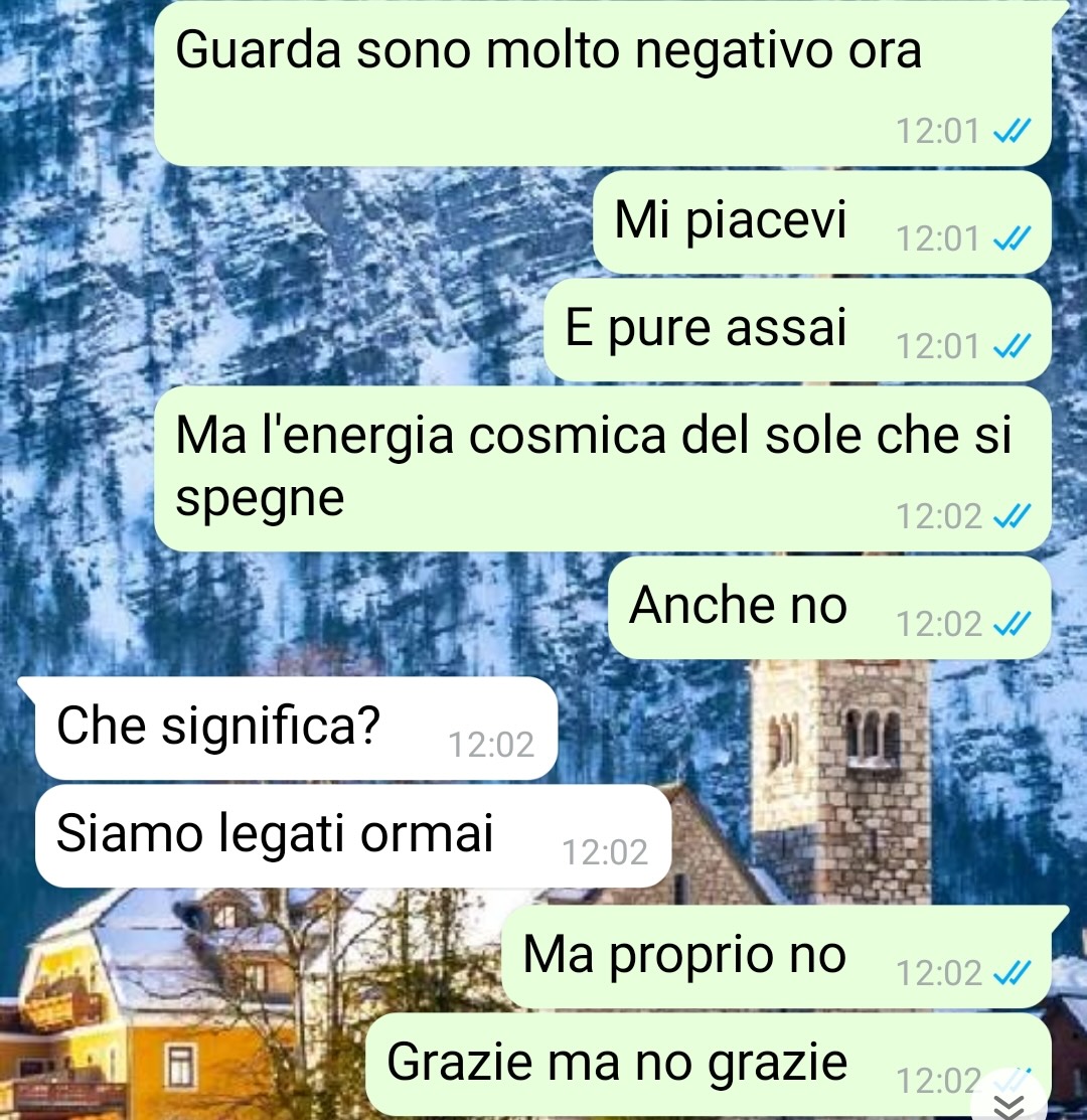 Il nostro fan è rimasto spiazzato dal gesto, soprattutto per il tempismo. Il giorno successivo ha ricevuto un messaggio da parte della ragazza, in cui veniva spiegata la motivazione dietro a quel comportamento. È in quel momento che Alberto ha scoperto in cosa credeva realmente Grazia, ovvero un sistema di convinzioni che non si aspettava minimamente di incontrare in una persona con cui si era trovato così bene fino a poche ore prima.