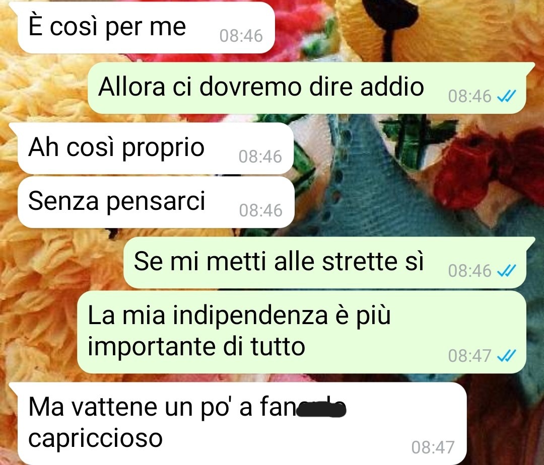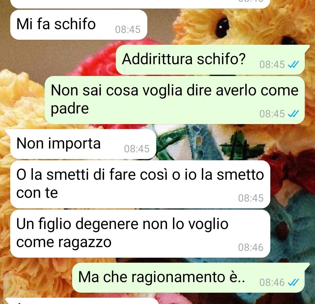 Questa volta, secondo quanto racconta il nostro amico, lo ha fatto passando attraverso la sua compagna, cercando di inserirsi ancora una volta nella sua vita in modo forzato e invasivo. Una dinamica che riapre ferite ancora in fase di guarigione, e che Saverio ha deciso di raccontare anche attraverso una conversazione che ha scelto di condividere.