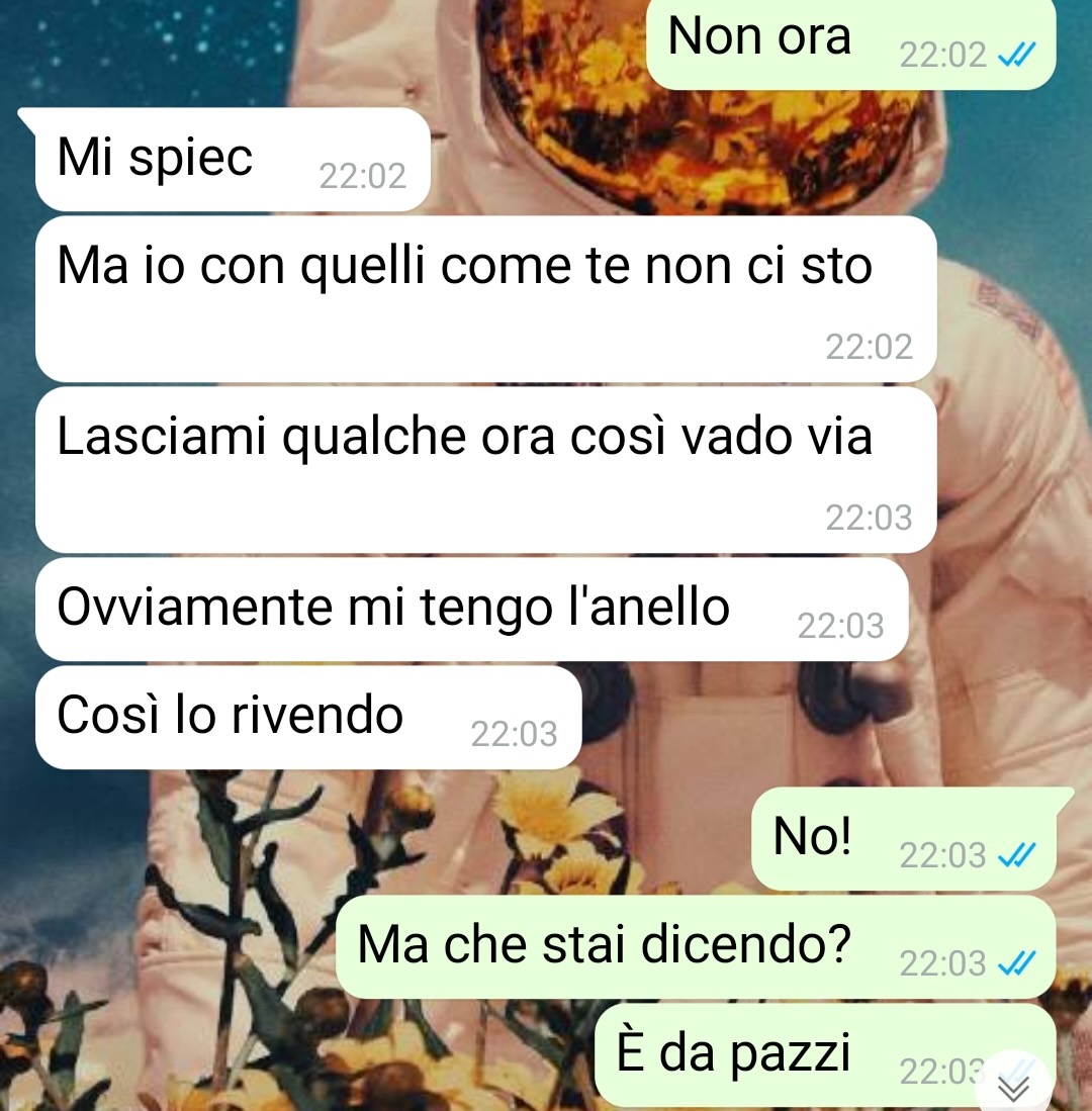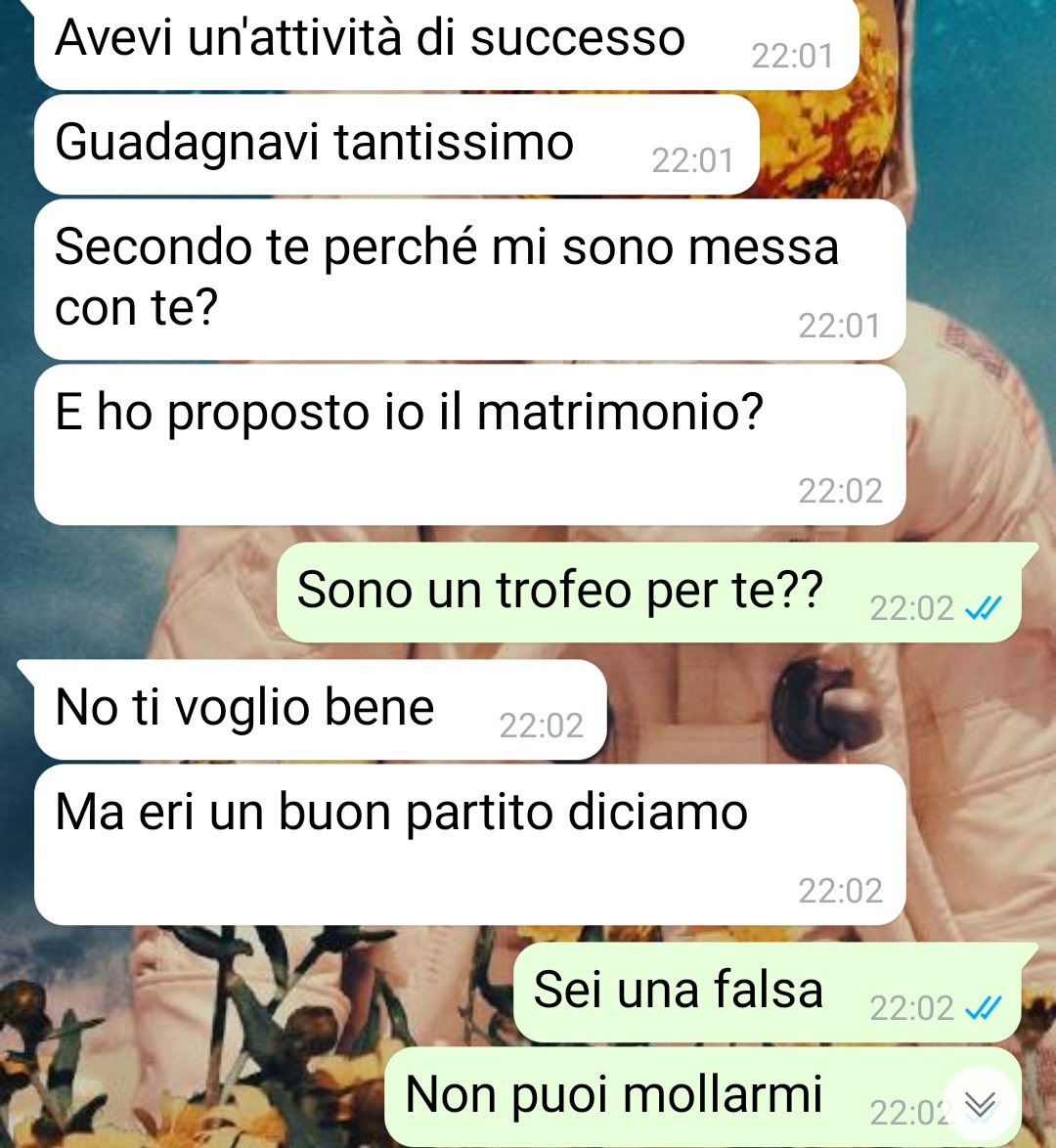 Lui e Sofia sarebbero dovuti diventare marito e moglie nel giro di pochi mesi, ma le circostanze hanno fatto cambiare tutto. L’uso del condizionale, nella sua testimonianza, non è casuale: qualcosa si è rotto. La reazione di lei di fronte a un momento così delicato ha avuto un peso enorme, forse più di quanto lui stesso si aspettasse. Il nostro follower ha deciso di condividere con Commenti Memorabili una conversazione che mostra quanto la situazione sia diventata complicata anche sul piano personale.
