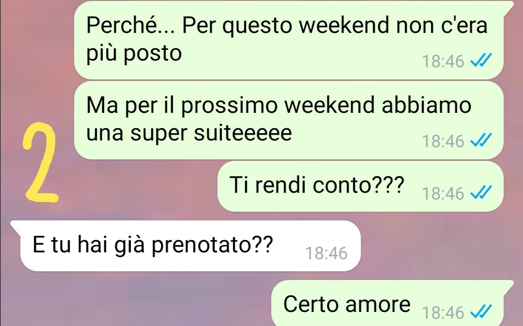Mi chiamo Alessio e sono un ragazzo originario di Torino che due anni fa in vacanza ha conosciuto la sua ragazza. Lei è napoletana e dopo un anno di amore a distanza ho scelto di trasferirmi e abbiamo praticamente iniziato a convivere. La distanza era davvero troppa per continuare così. Devo dire che il cambiamento per me è stato importante, è una vita completamente diversa a quella a cui ero abituato. Ma sono comunque felice della mia decisione. Proprio per questa ragione, questo è stato il primo anno nel mio nuovo impiego e non ho potuto prendere ferie. Quindi insieme alla mia ragazza avevamo deciso di fare un weekend un po’ speciale in un resort di lusso verso la fine dell’estate.Era tutto deciso, dovevo solo prenotare. Così chiamo il resort che abbiamo scelto, ma c’è un problema che risolvo da solo senza confrontarmi prima con lei. Così le scrivo solo per comunicarle ciò che è successo… e credetemi non avevo idea di ciò che questo avrebbe comportato…e secondo me nemmeno voi!