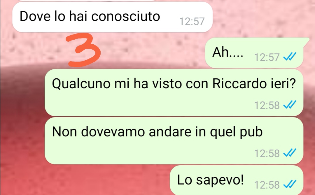 Mi chiamo Laura e quella che vi mando è la conversazione che ho avuto con la mia migliore amica… O meglio, quella che credevo fosse la mia migliore amica. E che ora non lo è più. Forse non lo è mai stata a dire il vero. Tutto inizia quando un giorno mi scrive perché ha saputo qualcosa su di me e vuole che io le racconti tutto. Abbiamo sempre fatto così, ci siamo sempre confidate tanto e così non ho problemi nel dirle ciò che effettivamente sta accadendo nella mia vita. In fondo abitiamo in un piccolo Paese non ci sarebbe voluto molto per venirlo comunque a scoprire. Così io tutta contenta, glielo racconto e la sua reazione mi spiazza completamente. Cioè non credevo che la mia felicità potesse essere considerata una cosa simile…le parole che mi dice sono forti e anche quello che sceglie di fare alla fine. Sono molto amareggiata, questo ve lo posso spoilerare e non riesco a capire la sua reazione… Io non ci vedo nulla di male! Non credo che quello che faccio sia una cosa sbagliata… Ma Invio la chat proprio per vedere se magari sono l’unica a pensarlo!