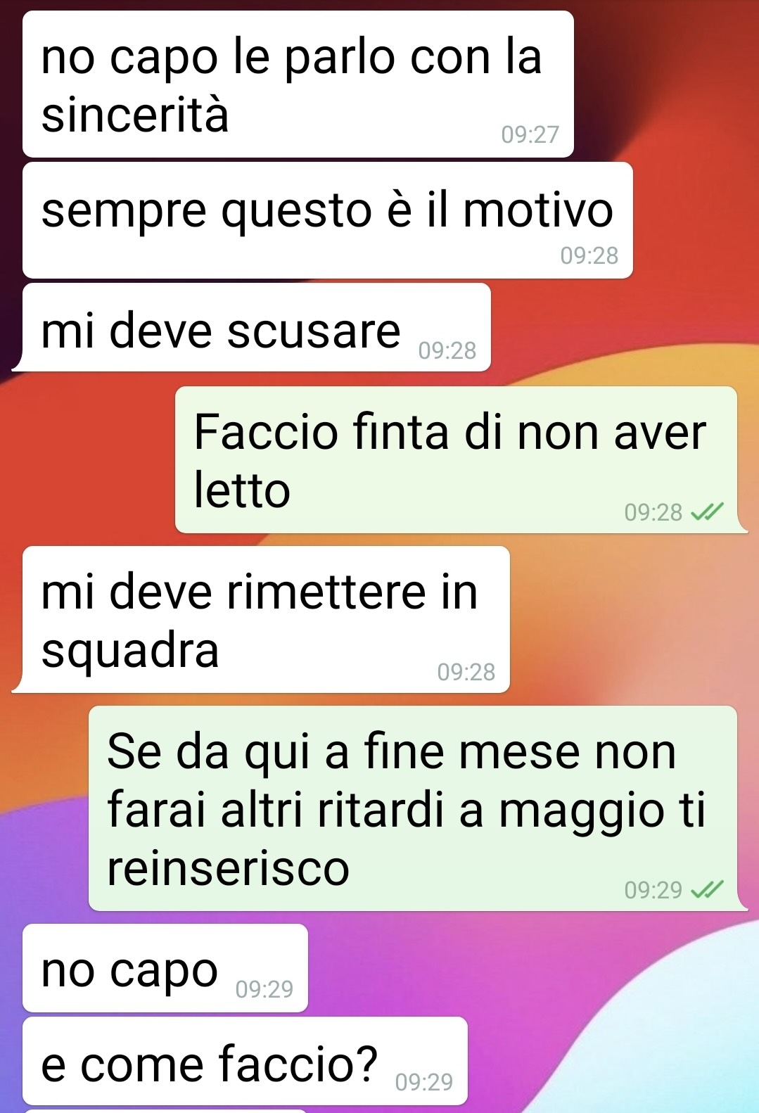 Da allora, il nostro amico ha notato un cambiamento evidente nei suoi comportamenti, in particolare riguardo alla puntualità. Le sue entrate al lavoro sono diventate sempre più ritardatarie, spesso di molti minuti, generando disagi nell’organizzazione dei turni e delle squadre. Dopo aver osservato a lungo la situazione, ha deciso di intervenire con dei provvedimenti, seppur non drastici.