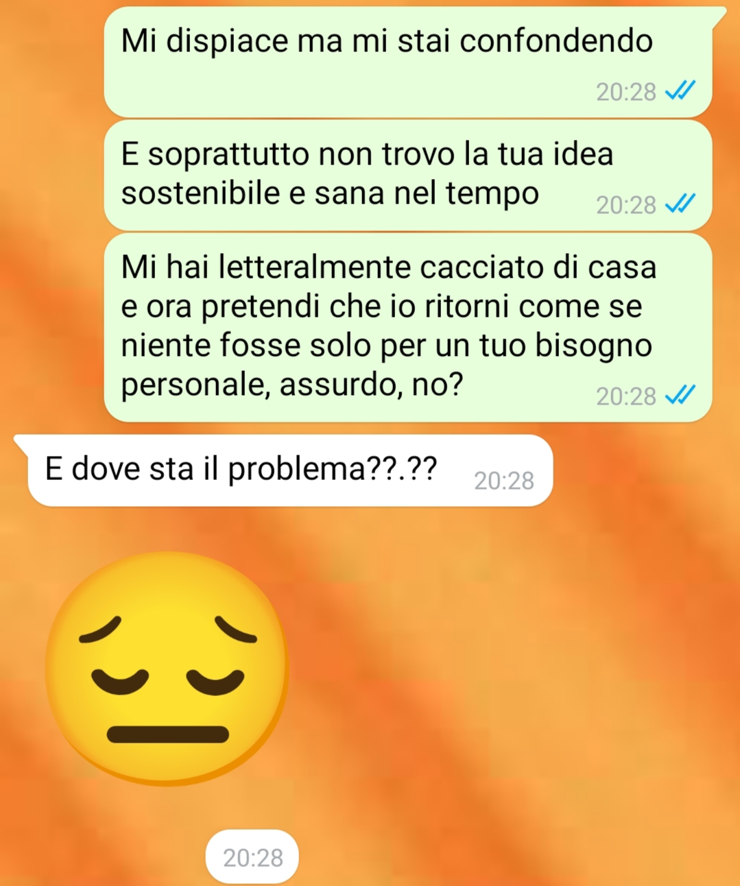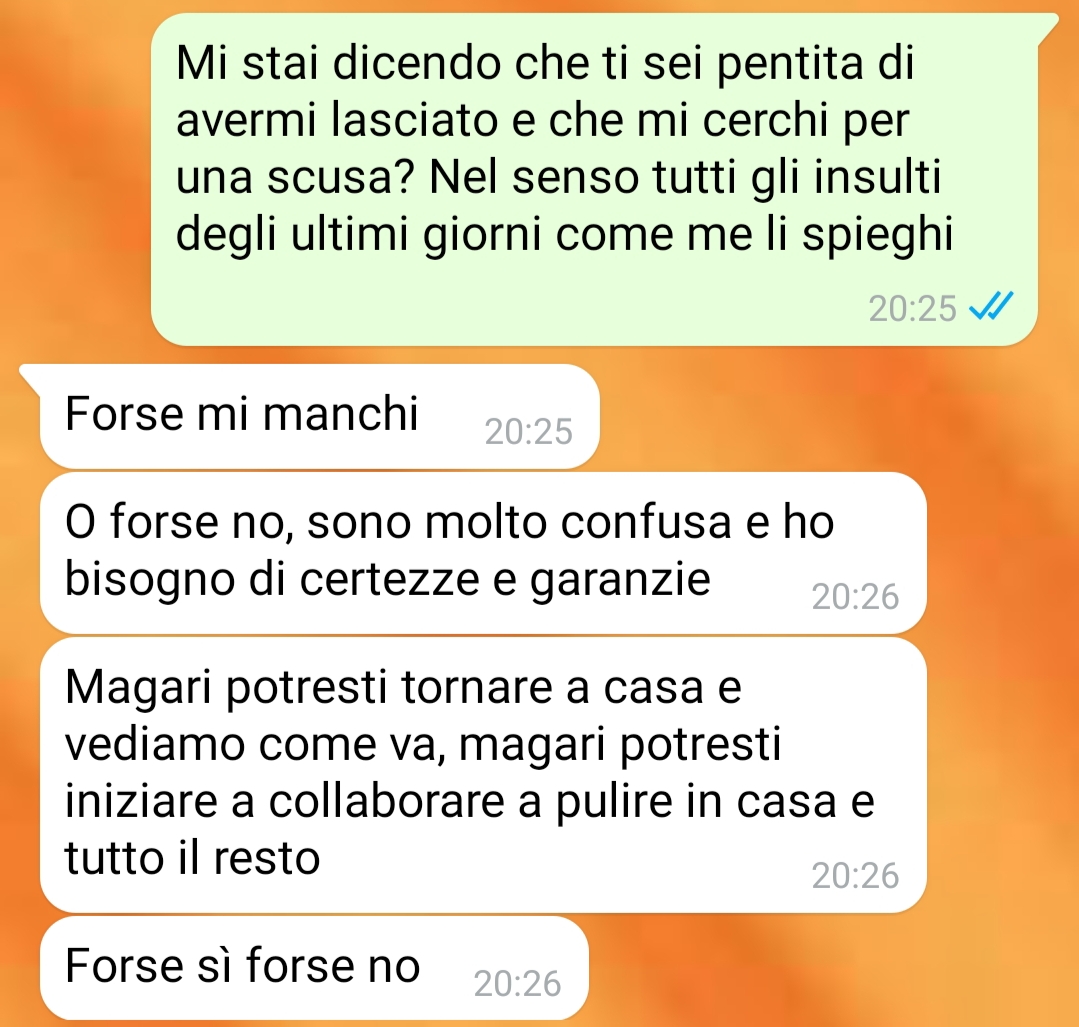 Il racconto mostra una situazione di forte tensione emotiva, in cui il bisogno di chiarezza e di pace interiore si scontra con la realtà di una separazione ancora aperta, segnata da parole dure e continue intrusioni. La nostra fan ha voluto condividere tutto questo in modo sincero, affidando alle parole il peso di un momento che continua a lasciare segni profondi.