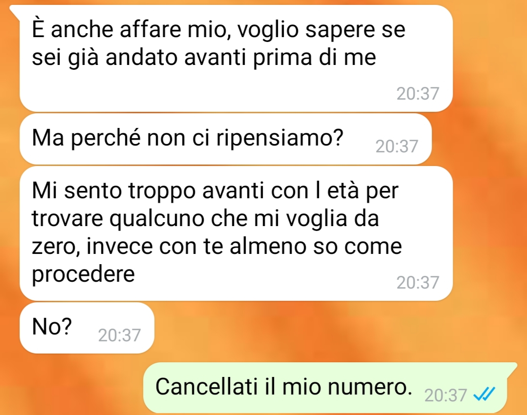 Nonostante tutto, ha scelto di prendere una direzione chiara, probabilmente necessaria per proteggere se stesso. Il nostro fan spera che questa decisione sia quella giusta, anche se non può fare a meno di temere un possibile pentimento futuro. La consapevolezza di essersi allontanato da una relazione importante è accompagnata da un senso di incertezza che ancora lo accompagna ogni giorno.