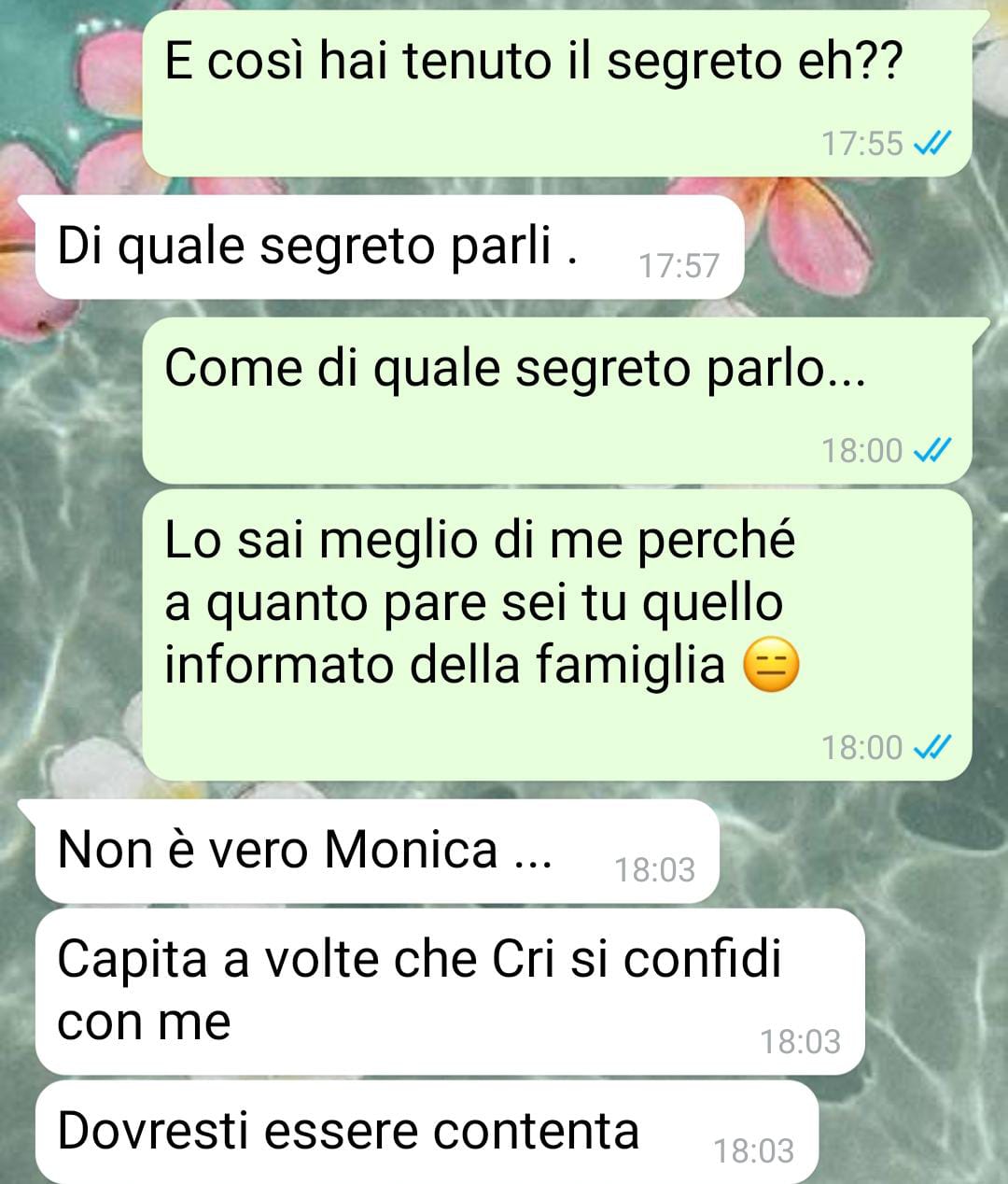 Oggi sono molto felice, e voglio condividere con tutto il mondo la mia gioia.Vi parlo prima un po’ di me, così potrete capire meglio.Mi sono sposata giovane. Avevo solo 19 anni quando io e Nicola siamo convolati a nozze. Il motivo di tanta fretta era una mamma ultracattolica, e la mia gravidanza… ero al quinto mese, e il giorno del mio matrimonio il pancione si intravedeva dal vestito.Cristina è nata, e la nostra vita familiare è cominciata, così come tante. Ho rinunciato a tante cose per la famiglia, ma ho potuto recuperare in seguito. Mia figlia è cresciuta, si è fidanzata e lavora, è diventata una brava ragazza. Pensate che ho realizzato il mio sogno nel cassetto, e mi sono laureata in Beni culturali, la mia passione, ormai cinque anni fa.Io e Nicola però non siamo durati il per sempre che ci eravamo promessi. Non ci siamo separati per motivi particolari, semplicemente ci eravamo persi come coppia. D’altronde, ci eravamo sposati troppo giovani… entrambi volevamo recuperare la libertà perduta. Ma negli anni ci siamo sempre rispettati e abbiamo fatto tutti e due il possibile per nostra figlia.Però un due anni fa ho scoperto di essere malata. È stata dura, la diagnosi. Avevo paura dei cambiamenti che il mio corpo avrebbe subito, e di come mi sarei indebolita.Per fortuna c’era Nicola con me, oltre che mia figlia. Lui si è fatto in quattro per sostenermi, per supportarmi moralmente e aiutarmi in tutto il possibile. Non avevamo smesso di volerci bene, anche se ognuno aveva preso la sua strada. E poi eravamo sempre i genitori di Cristina. La malattia è regredita in fretta, sono stata protetta da lassù (grazie nonnina che mi proteggi sempre) e comunque non si trattava di una forma aggressiva.Ora posso dire che sto bene.Ma questa ulteriore sorpresa non me la aspettavo.