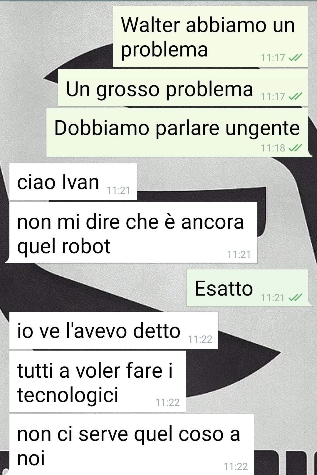 Ho trovato le prove che un dipendente dell’azienda manometteva di proposito l’attrezzatura. E sostiene di avere delle motivazioni valide. E io adesso mi trovo in un bel dilemma. Sono Ivan e sono supervisore presso una piccola-media azienda che ha recentemente installato un robot per svolgere una operazione che veniva fatta a mano fino ad aprile. Lo scopo era di ottimizzare tempi e risorse, con conseguente aumento di qualità e redditività. Ma questo robot ci ha bloccato la produzione già 5 volte. Forse che c’è un errore che si ripete? Non per il tecnico, che sostiene altre tesi. Ho allora indagato con l’ausilio di telecamere nascoste. E questo mi ha portato alla chat che vi invito a leggere. Chat con il colpevole, Ivan. Lavoratore puntuale, affidabile e tutto sommato un quasi amico che si è trasformato in un sabotatore. Per motivi assurdi da un lato ma comprensibili (non giustificabili) dall’altro. Ora come devo comportarmi? Non sono convinto quale sia la cosa giusta da fare.