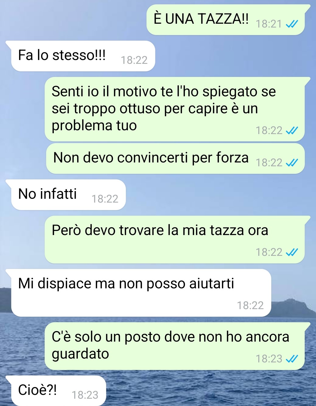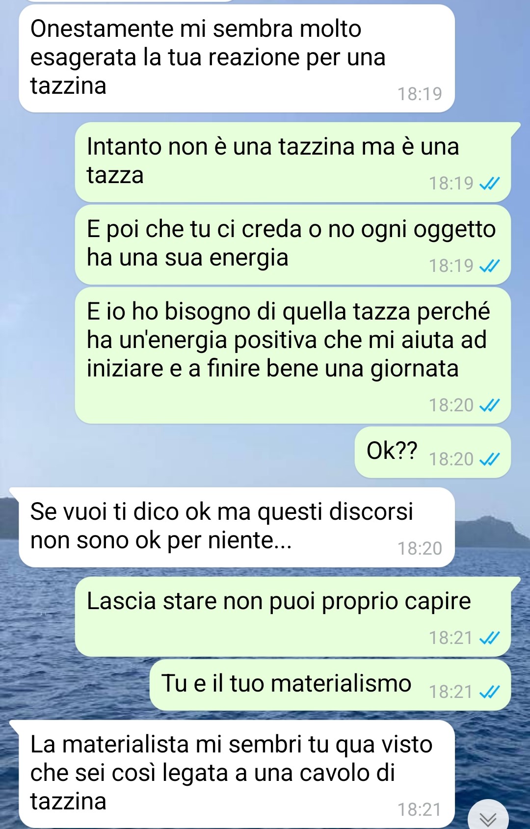 Nel suo racconto, Anna si descrive come una persona abitudinaria, molto legata a determinati oggetti personali, specialmente quelli che custodiscono un valore affettivo. Tra questi, c’è una tazza apparentemente semplice, ma per lei importantissima: un oggetto simbolico, carico di significato, perché rappresenta uno degli ultimi regali ricevuti dalla madre prima della sua scomparsa, avvenuta due anni fa.