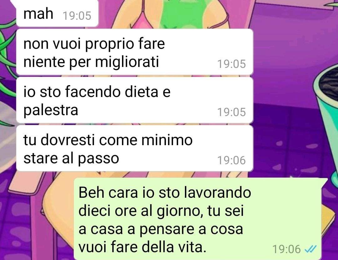 La sua fidanzata, Sara, ha 24 anni e vive ancora con i genitori. Attualmente non studia né lavora, ma, come racconta il nostro follower, sta attraversando un periodo di incertezza in cui cerca di capire quale direzione dare alla propria vita. La loro relazione dura da un anno e mezzo. All’inizio tutto sembrava andare per il meglio: i due si divertivano insieme e lei mostrava di apprezzarlo per la persona che era.