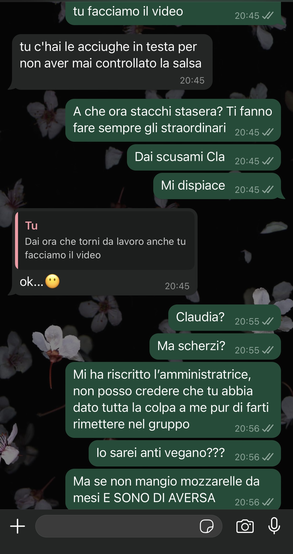 Nel suo racconto il nostro amico spiega che da quella situazione si è sviluppata una tensione che lo ha colpito molto, soprattutto per la reazione della compagna. Il nostro fan racconta di aver avuto la sensazione che Claudia gli abbia voltato le spalle in quel momento, nonostante lui abbia sempre cercato di venirle incontro su molti aspetti della loro vita insieme, incluso il fatto di cucinare prevalentemente piatti vegani in casa. Il follower spiega di essersi sentito a disagio anche nei confronti degli altri membri del gruppo, con cui condivideva spesso idee e conversazioni. Racconta inoltre che, dopo quanto accaduto, da due giorni non è tornato a casa dalla sua ragazza e che continua a ripensare a quella situazione.