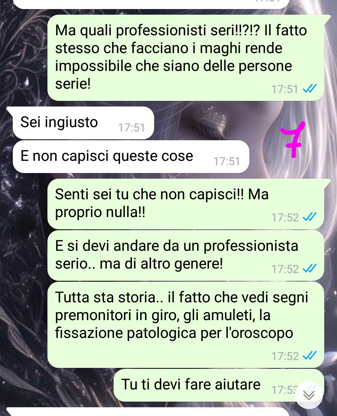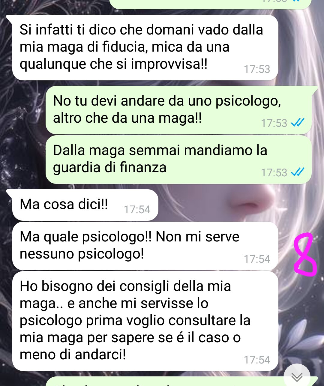Lucia, infatti, sarebbe abbonata a un servizio astrologico molto costoso che consulta più volte al giorno. A questo si aggiungono visite frequenti a una maga e acquisti online di amuleti “scaccia maledizioni”. Il nostro follower spiega che queste abitudini, oltre a incidere economicamente, stanno avendo un forte impatto sul clima della relazione.