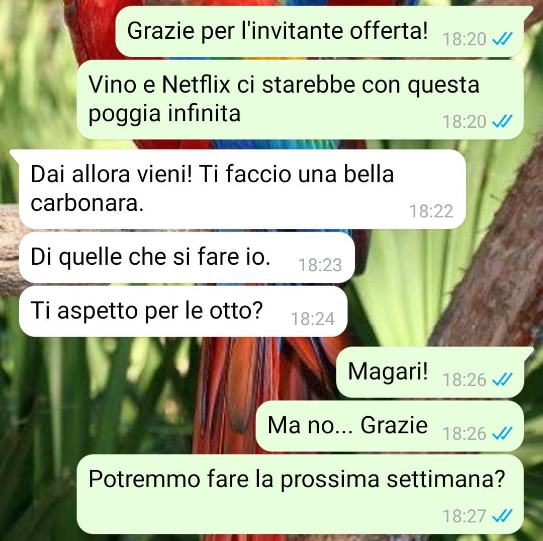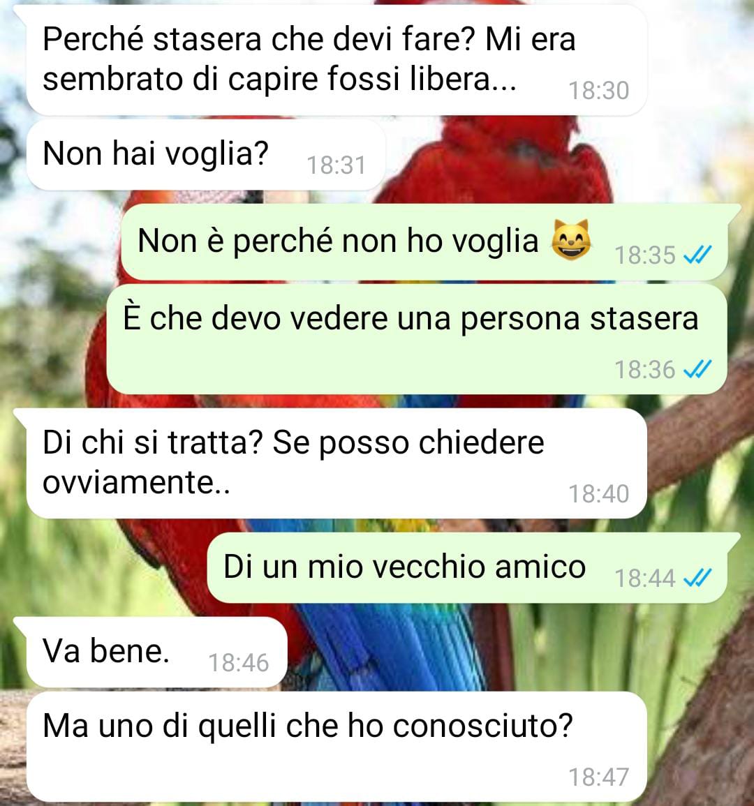 Io sono Elisa, e oggi ho deciso di mandarvi questa storia che, purtroppo, non è finita come speravo. Sapete, quando inizi a uscire con qualcuno, c’è sempre quell’emozione, quella scin?lla che ? fa pensare “e se fosse la persona giusta?” Con il ragazzo della chat è stato così, almeno all’inizio. Uscivamo insieme da tre mesi e tuFo sembrava andare per il meglio. Ridevamo, ci diver?vamo, e sembrava che ci capissimo alla perfezione. Io lavoro come grafica pubblicitaria e l’ho conosciuto proprio grazie a un progeFo a cui abbiamo lavorato assieme. Si traFava di una sola collaborazione, ma abbiamo notato subito stata una sintonia speciale tra di noi, qualcosa che andava oltre il lavoro. Quindi abbiamo iniziato a frequentarci. Ma poi, ahimè, è spuntata quella fas?diosa red flag che non riesco proprio a ignorare: la gelosia. Vi è mai capitato di trovarvi con una persona che sembra fantas?ca, ma poi rivela insicurezze che non sapevate esistessero? Ecco, questo è stato il mio caso. È frustrante perché pensi di aver trovato qualcuno di sicuro di sé, con cui poter costruire qualcosa di bello, e poi ? rendi conto che forse ? sbagliavi. Vi dico solo che ci sono rimasta male, anche se non l’ho dato a vedere, ma sono contenta di essere rimasta fedele a me stessa. Ho rifleFuto molto in ques? giorni… Mi chiedo sempre perché sia così difficile trovare una persona che non si lasci sopraffare dalle proprie insicurezze. Se avete avuto esperienze simili, sono sicura che capirete esaFamente come mi sento.