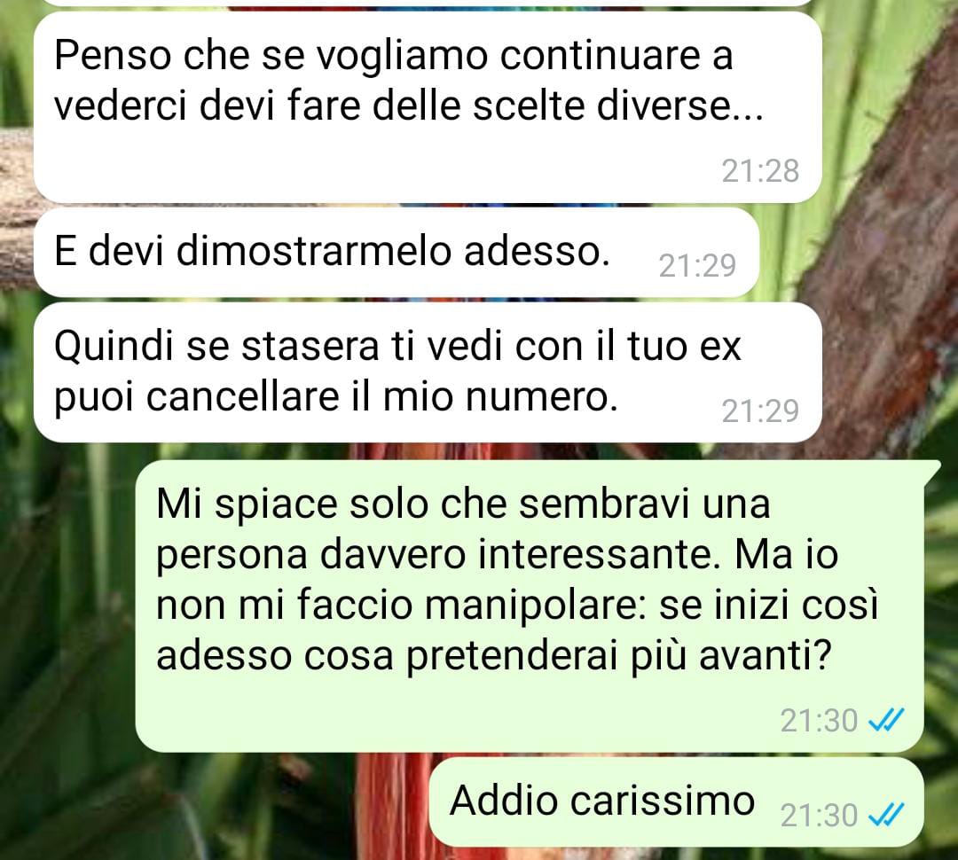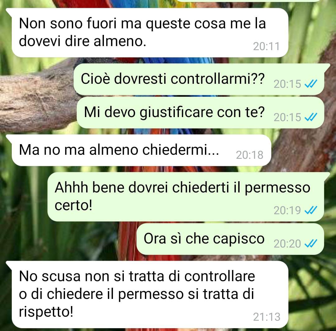 Elisa scrive che per lei è stato un colpo inaspettato. Non solo perché non se lo aspettava da una persona che le era sembrata sicura di sé, ma anche perché aveva davvero creduto che la loro relazione si basasse sulla fiducia e sulla libertà reciproca. Si è accorta, però, che il ragazzo iniziava a vivere ogni sua interazione con il mondo esterno come una minaccia, come se lei dovesse continuamente dimostrare qualcosa. Dice che questo atteggiamento l’ha fatta riflettere molto: nonostante l’affetto e l’intesa iniziale, ha capito che non poteva accettare di vivere una storia in cui doveva giustificare ogni cosa o nascondere parti di sé per evitare discussioni. Così, pur con dispiacere, ha deciso di prendere le distanze, scegliendo di restare fedele a se stessa piuttosto che rinunciare alla propria serenità.