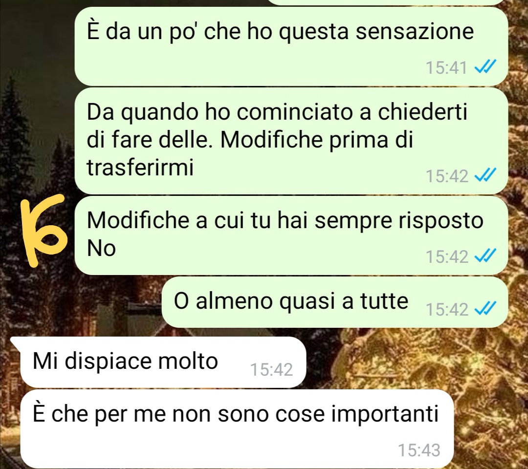 Nel racconto, la nostra fan precisa che, dopo circa un anno di relazione, i due hanno iniziato a valutare la possibilità di andare a convivere. Questa prospettiva porta l’amica a confrontarsi con una realtà che per lei non è semplice: trasferirsi in una casa che rappresenta il passato della precedente relazione del partner. Nonostante le difficoltà emotive, il nostro fan afferma di aver accettato questa scelta per motivi pratici.