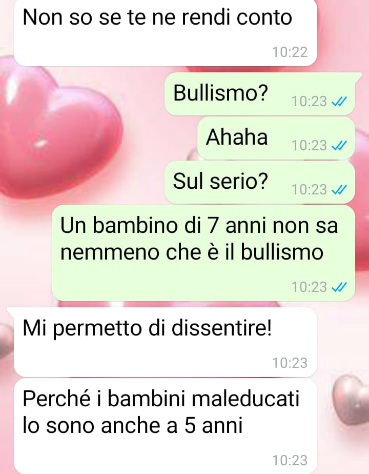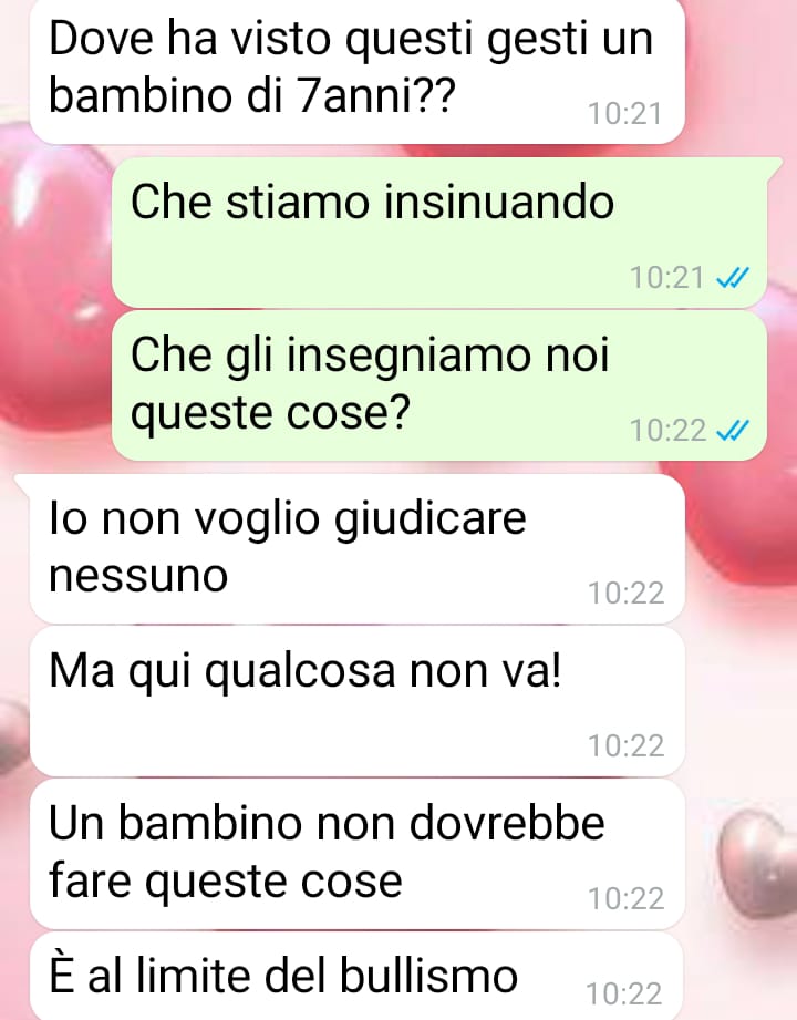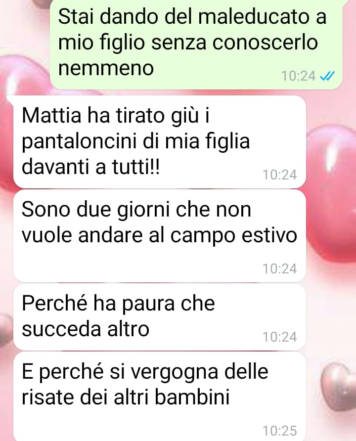 Secondo quanto racconta, l’occasione che ha fatto emergere questa consapevolezza è stata una situazione verificatasi al campo estivo frequentato da suo figlio. Si è trattato di un piccolo episodio, che a suo avviso era stato gestito e risolto in modo sereno direttamente con le educatrici.