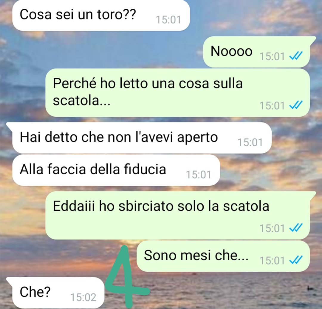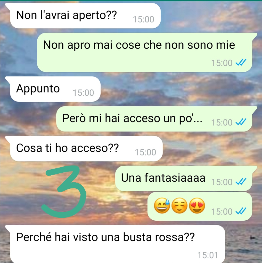 Ciao a tutti, mi chiamo Edoardo e convivo da tre anni con Luisa, detta Lù. Io e Luisa ci siamo conosciuti perché i nostri fratelli (mia sorella e suo fratello) erano già fidanzati… Siamo o almeno ho sempre creduto fossimo una coppia ben assortita. Lei non è la classica donna di casa, in casa faccio più io anche se nemmeno io sono ossessionato dall’ordine. Diciamo che siamo due disordinati cronici ma da quando viviamo insieme per quieto vivere ho dovuto migliorare un po’. A proposito di questo, l’altro giorno stavo mentre mettevo a posto il bagno trovo una busta e sbirciando dentro leggo una cosa che mi rincuora… perché dico così, perché dovete sapere che ultimamente le cose tra me e Lù non vanno molto bene. Lei sta affrontando un momento tutto suo nel quale non ha più voglia dell’’intimità con me… ma quando trovo questa busta e leggo cosa c’è scritto sulla scatola, mi ringalluzzisco e le scrivo un messaggio…penso che finalmente ci ritroveremo che il periodo no è passato anche questa volta… almeno queste erano le mie speranze. Ma leggete cosa è accaduto veramente…
