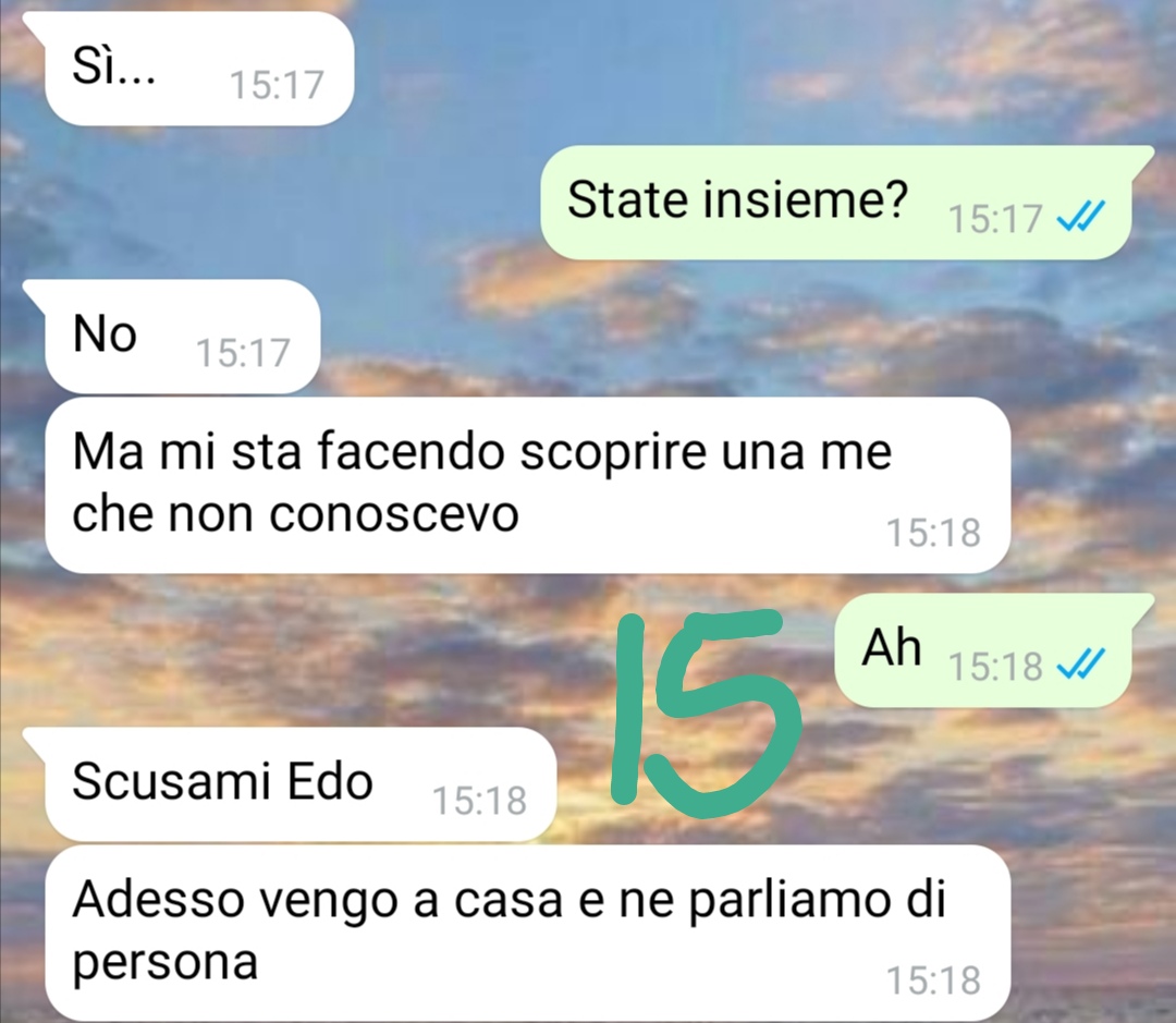 Edoardo condivide la chat per mostrare quanto sia stato destabilizzante quel momento. Le sue speranze, nate da un dettaglio apparentemente promettente, si scontrano con una realtà diversa, che non aveva previsto. Un episodio che mette in discussione non solo il presente della coppia, ma anche l’idea stessa di complicità e comunicazione costruita negli anni.