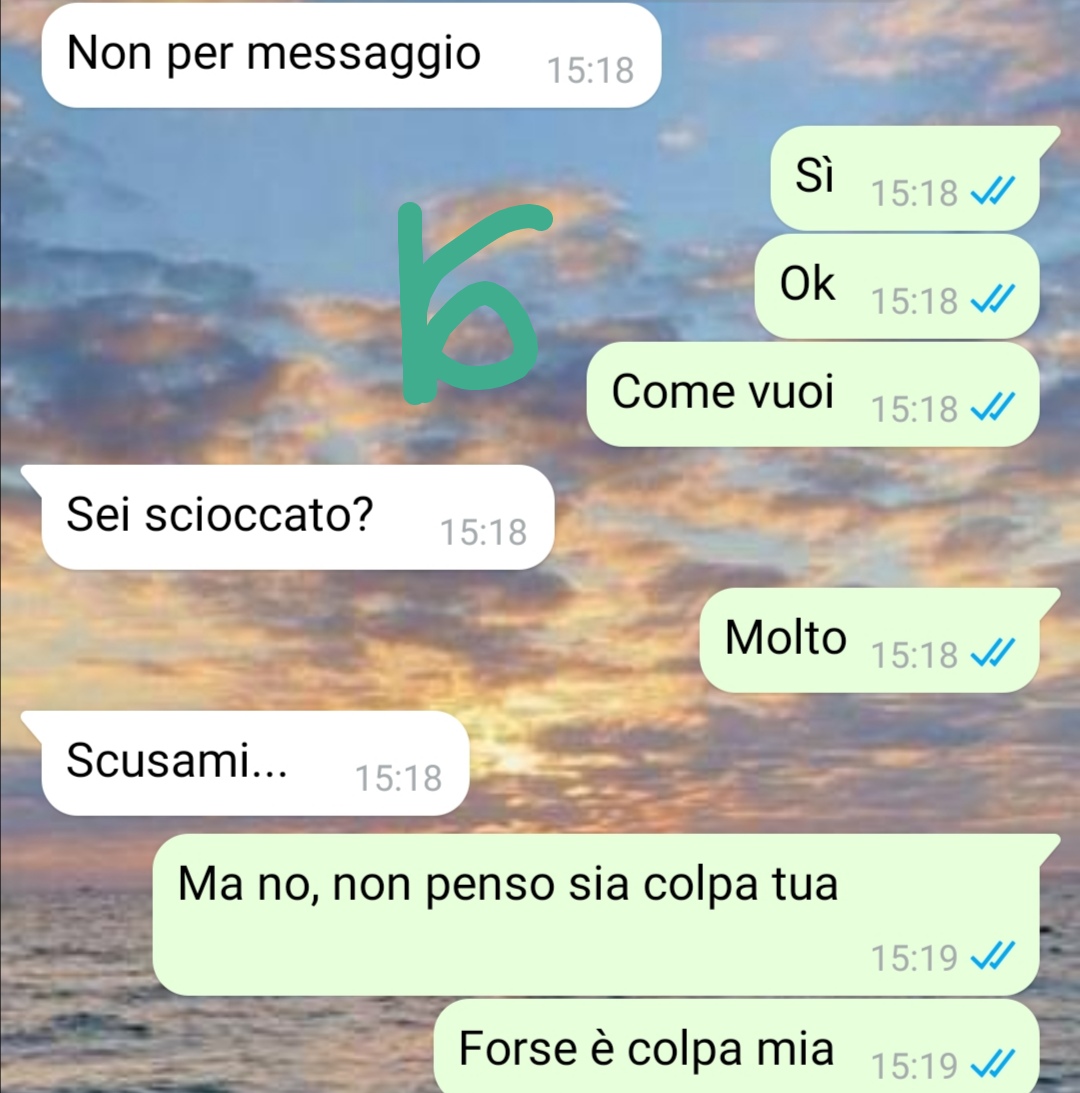 Con entusiasmo, le scrive un messaggio. Pensa che sia arrivato il momento in cui lui e Luisa si ritroveranno, come già accaduto in passato dopo momenti complicati. Ma la risposta che riceve, o forse ciò che succede dopo, gli fa crollare ogni illusione.