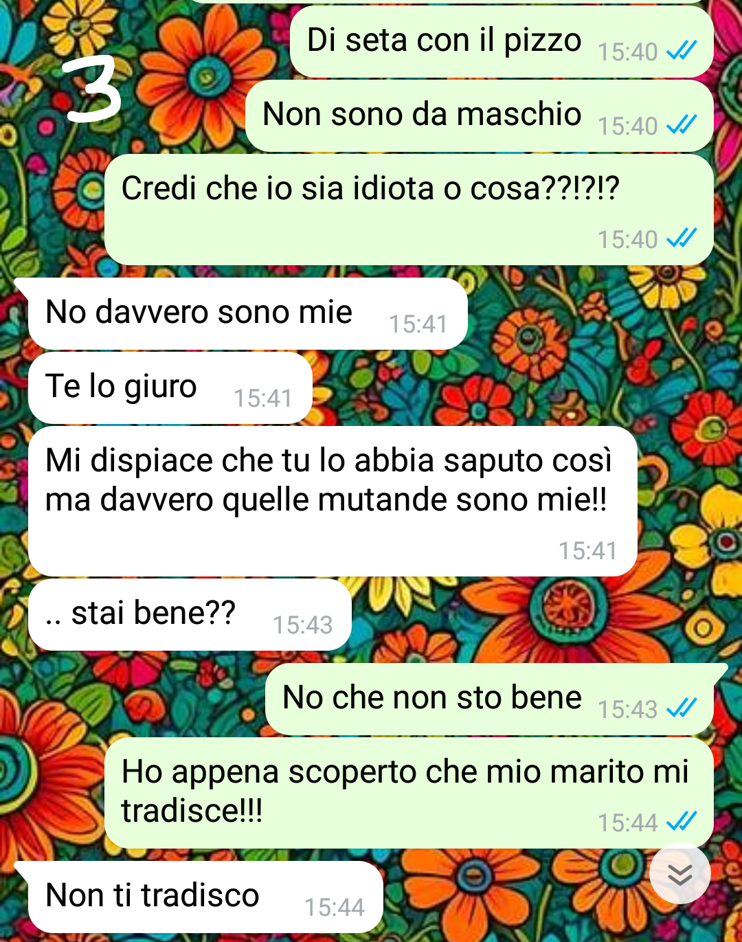 Ieri stavo caricando la lavatrice dividendo i vestiti e mi trovo in mano un paio di mutandine di seta bianche. E no non sono mie. In casa viviamo io e mio marito, e basta. Ora secondo voi cosa devo pensare?! Vi racconto un attimo di me e della mia vita. Mi chiamo Viviana e sono sposata con Riccardo da 6 anni. Stiamo bene insieme, tra alti e bassi come tutte le coppie certo, ma alla fine siamo felici. Litighiamo poco, abbiamo gusti e abitudini simili e abbiamo la stessa visione delle cose. Anche la vita, diciamo, di coppia va bene! Però recentemente ho notato in mio marito un cambiamento nell’atteggiamento: ha iniziato a uscire di più con gli amici e a tornare più tardi da lavoro.. non molto per carità ma un po’ si. E poi è sempre nervoso e distratto, sempre stanco e perso nei suoi pensieri. Ho provato a parlargli e lui ha detto che si trattava solo di problemi sul lavoro e che la cosa sarebbe passata in fretta. Ma non è stato così. Alla luce di tutto questo quindi quando ho trovato le mutandine nel bucato ho subito pensato di aver trovato la prova che mio marito avesse una relazione! Non ho lasciato passare neanche un secondo e gli ho scritto per chiedere spiegazioni. Mi immaginavo scuse su scuse ma mai avrei immaginato la risposta che mi ha dato…
