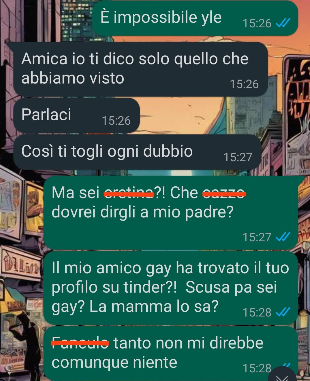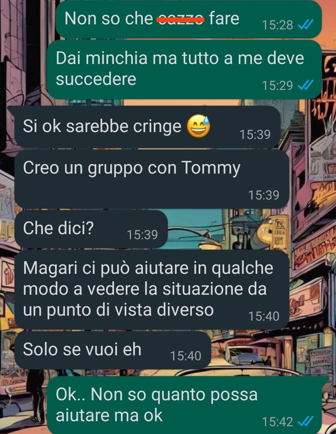 Secondo quanto raccontato dalla nostra fan, lei e Ylenia si sono sempre promesse di dirsi tutto con sincerità. Ed è proprio in nome di questo patto di fiducia che Ylenia ha deciso di scriverle, per informarla di quanto scoperto insieme a un altro amico dell’università, Tommaso. Non appena ha ricevuto il messaggio, la nostra follower ha cominciato a pensare al peggio. Ha spiegato di essersi immaginata numerosi scenari, creando nella propria mente ipotesi e interpretazioni sempre più complicate.