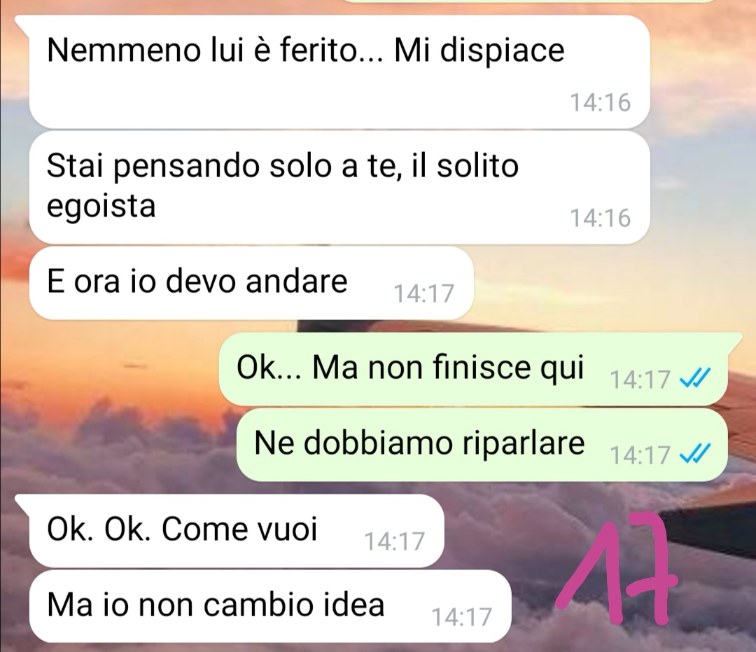 Desideroso di ottenere un confronto diretto con l’ex moglie riguardo a quanto accaduto durante quella cena, la nostra fan tenta di contattarla immediatamente. Tuttavia, lei non può parlare a causa di un imminente concerto di Natale con la filarmonica di cui fa parte. La conversazione si sposta quindi su WhatsApp, e il follower decide di condividere questi messaggi perché non riesce a credere di essere l’unico a considerare tutta la situazione totalmente assurda, irrispettosa e priva di senso.