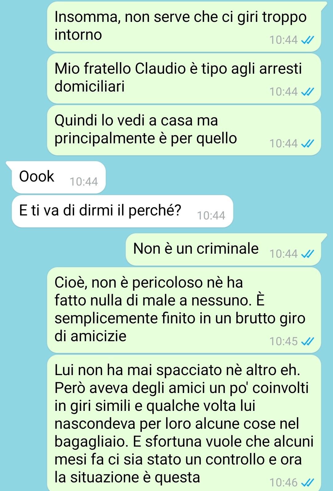 La nostra fan, Delia, racconta di essersi innamorata di un sogno che, col tempo, si è fatto sempre più complicato. Circa un mese fa ha conosciuto Brando tramite amici comuni. Fin da subito tra loro è nata una forte sintonia: messaggi quasi quotidiani, attimi condivisi, un’attrazione reciproca che sembrava crescere col passare dei giorni.