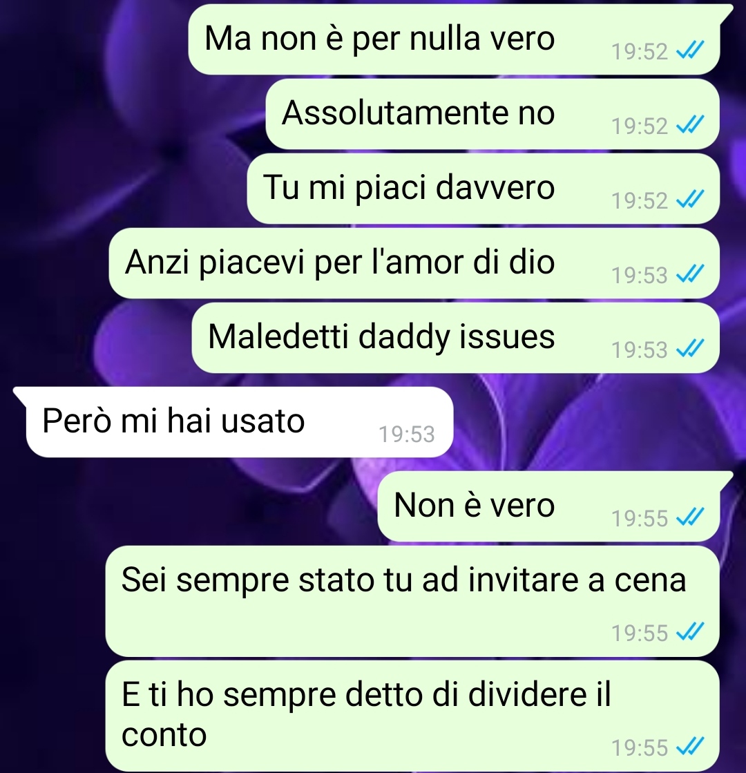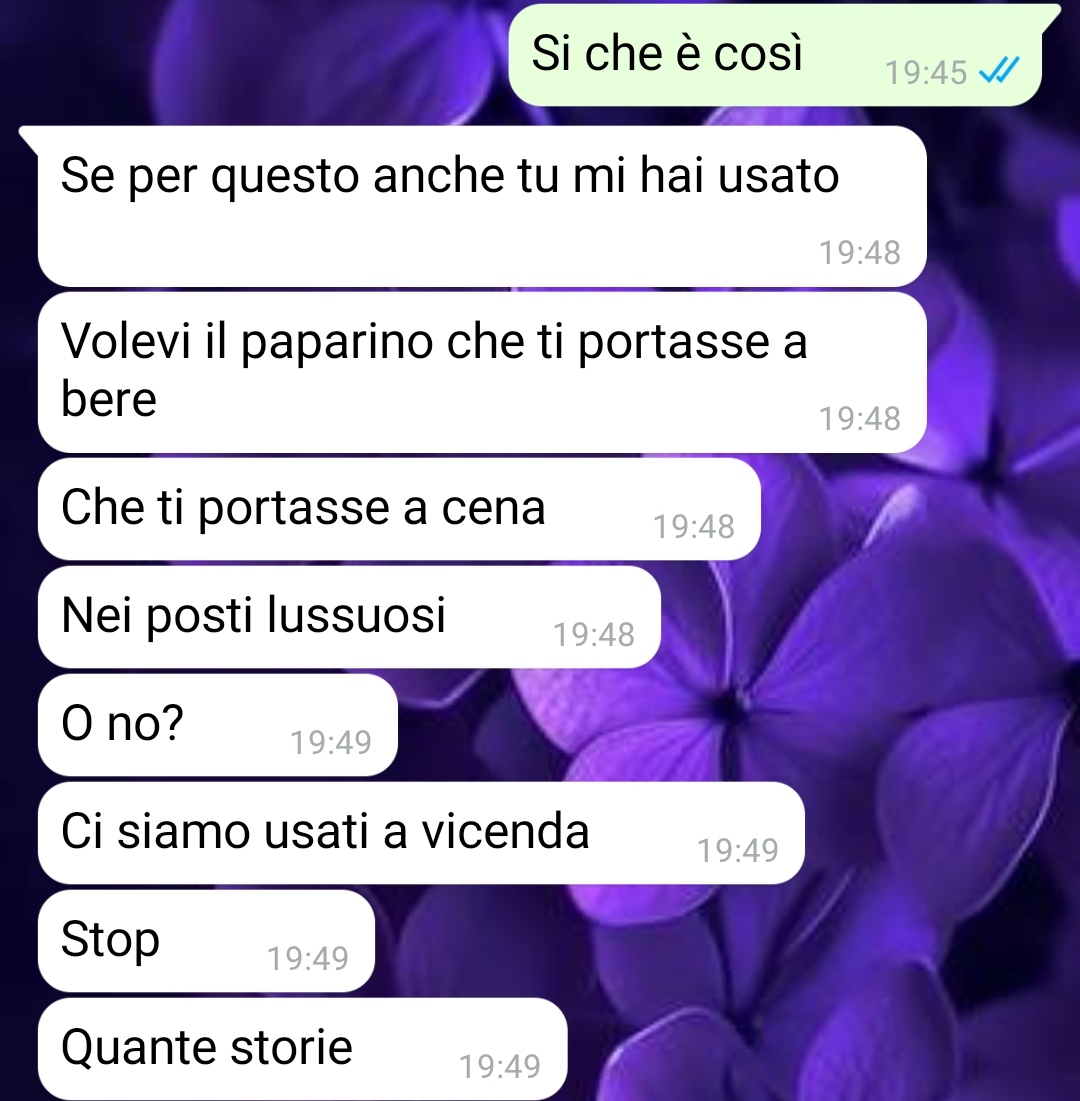 Secondo quanto riportato dalla nostra follower, il comportamento di questa persona è stato abilmente camuffato. Non aveva alcun sospetto fino al momento della confessione, che l’ha colta completamente alla sprovvista. Le sue parole rivelano una grande delusione, nata dal sentirsi ingannata da qualcuno che aveva saputo nascondere ogni cosa con estrema abilità.
