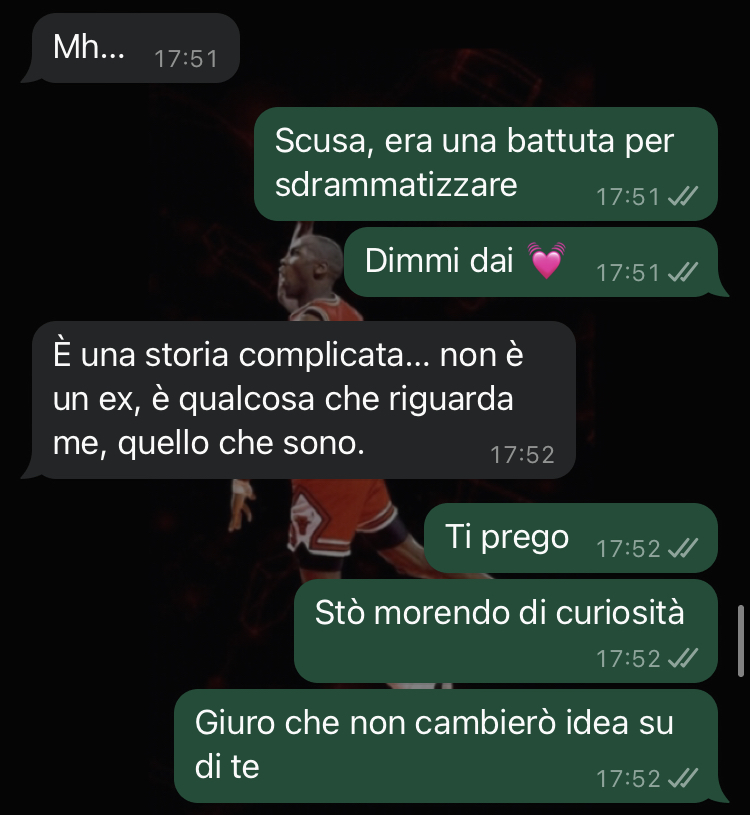 Il nostro fan racconta di aver conosciuto una ragazza di nome Martina attraverso l’app di incontri Tinder. Fin dai primi momenti, l’amico descrive come la connessione sia stata speciale e diversa dal solito: Martina si è rivelata essere una persona simpatica, brillante, ricca di interessi e molto attraente. La frequentazione è iniziata con alcuni appuntamenti che sono andati talmente bene che i due hanno cominciato a sentirsi e vedersi quotidianamente. Il follower confessa che anche i suoi amici lo prendevano in giro per quanto fosse evidentemente preso da questa nuova conoscenza.