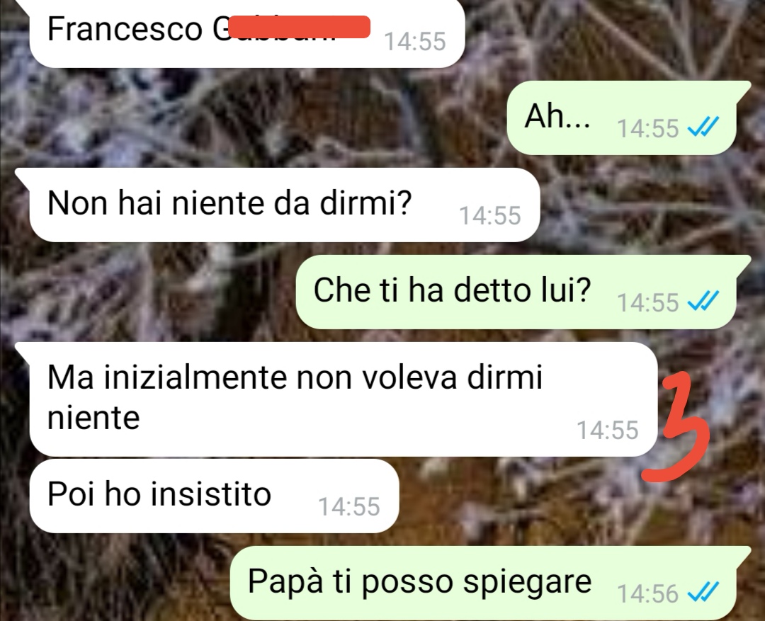 Ciao a tutti, il mio nome è Adriana e il mio più grande sogno è quello di diventare una chef. Ho studiato tanto per questo ed è una passione che ho ereditato dalla mia famiglia. Infatti i miei hanno un ristorante abbastanza conosciuto in una città del nord Italia. Fin qui immagino che tutti direte: beh, cosa volevi di più? In realtà le cose sono un po’ diverse da come appaiono. È pur vero che la mia famiglia possiede un ristorante ed è quello presso il quale attualmente lavoro, però io sento che mi manca qualcosa. Io quel posto non lo sento davvero mio, inoltre in cucina ci lavorano già mio padre e mio fratello e a me fanno fare davvero poco. Lo so che bisogna fare la gavetta e io sono la prima che fin da ragazzina ha sempre accettato tutte le regole della cucina, che a volte possono anche essere dure. Adesso però una ragazzina non lo sono più, ho le mie idee, i miei sogni e ho capito che sono molto distanti da quelli della mia famiglia. Loro hanno anche un’idea di cucina e ristorazione distante da quella che ho io. Così qualche settimana fa ha cominciato a frullarmi nella testa un’idea e ho seguito il mio istinto. Purtroppo però, prima che potessi parlarne alla mia famiglia e soprattutto a mio padre è successo il patatrac… così ricevo un messaggio da parte di mio padre che mi avvisa di una cosa. È passata a cercarmi una persona e ora lui sa tutto. Ma non è tutto… è stata la sua reazione a lasciarmi senza parole. So che detto così appare tutto un po’ confuso, ma volevo solo spiegarvi un po’ per farvi capire meglio la conversazione che vi mando e che mi ha mandato letteralmente in crisi…