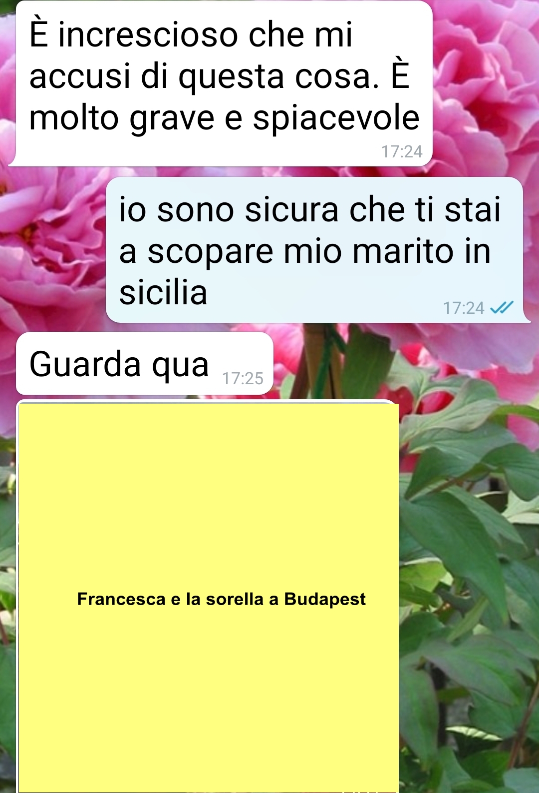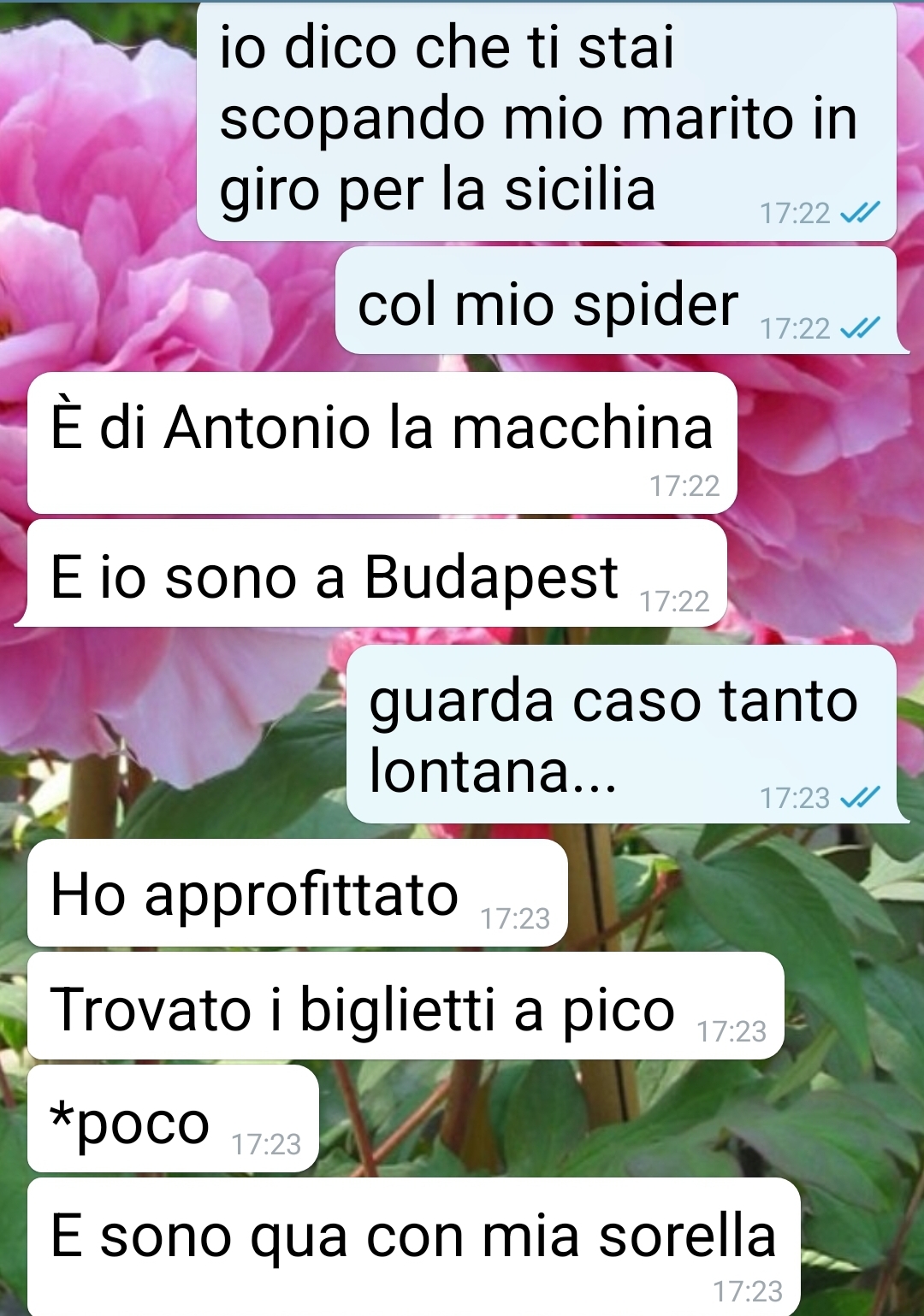 A quel punto, racconta, decide di scrivere immediatamente al marito per chiedere chiarimenti. Lo scambio che ne segue è quello che ha scelto di condividere. Dalle sue parole emerge sorpresa e disorientamento per quanto emerso, in una vicenda che, iniziata come un normale fine settimana separati, ha preso una piega del tutto inaspettata.