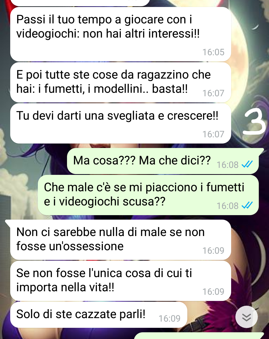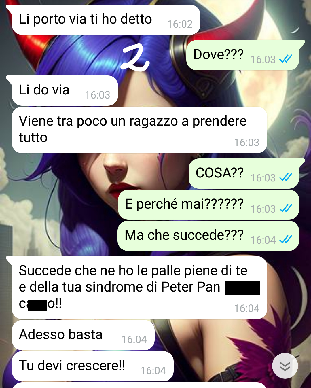 Mi chiamo Antonio e ho una ragazza che mi sta facendo impazzire.. ma nel senso negativo del termine!!! Allora la mia ragazza, Fabiana, si è messa in testa che io ho la Sindrome di Peter Pan.. non so dove ha sentito sta cosa, chi gliela ha detta.. in ogni caso lei è convinta che io sia troppo infantile, non voglia crescere e affrontare le responsabilità! Insomma secondo lei io sono un adolescente cresciuto che gioca a fare l’adulto.. o forse un adulto che vuole ancora essere adolescente.. non so davvero alla fine che pensa sta donna.. Ma perché direte voi lei si è fatta questa idea!?!? Il motivo è davvero assurdo, tutto è nato dal fatto che io amo i fumetti, in particolare i manga giapponesi, e mi piacciono i videogiochi. Secondo la mia ragazza queste sono cose da ragazzini e io che ho 28 anni non dovrei più interessarmi a queste cose.. ma che c’è di male dico io!?!? Alla fine se mi rilassano e mi divertono perché mai non dovrei continuare ad avere queste passioni?? E poi sarò libero di passare il mio tempo, dopo il lavoro, a fare quello che mi piace?!?!? Comunque Fabiana vuole che io cambi e che chiuda con quello che mi piace.. e l’altro giorno ha davvero esagerato.. leggete..