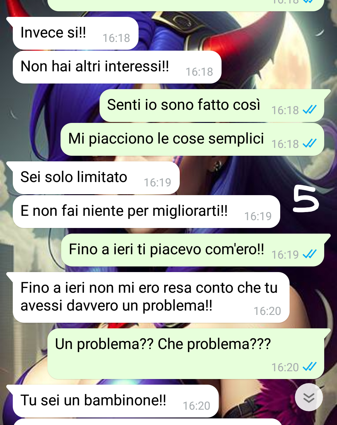 Il nostro amico spiega di non sapere da dove Fabiana abbia tratto questa convinzione, ma riferisce che lei lo considera un adolescente cresciuto che gioca a fare l’adulto, oppure un adulto che vorrebbe restare adolescente. Antonio racconta di sentirsi etichettato in modo ingiusto e di non comprendere fino in fondo cosa la nostra fan pensi davvero di lui.