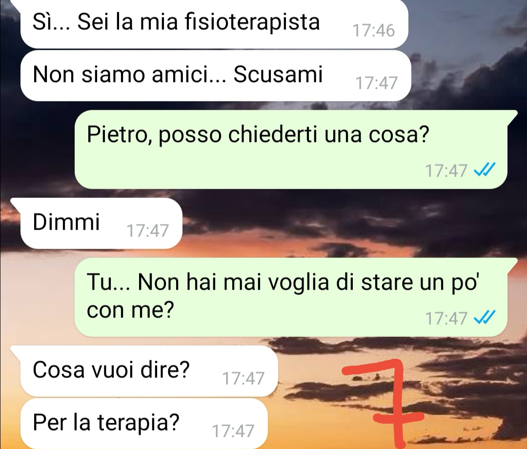 La nostra fan Alice, una fisioterapista di 26 anni, ha condiviso una storia particolarmente commovente che riguarda Pietro, un ragazzo della sua età che alcuni mesi fa è rimasto coinvolto in un grave incidente. Attualmente Pietro è diventato suo paziente e, oltre alle difficoltà fisiche che sta affrontando attraverso la fisioterapia, deve confrontarsi con una perdita significativa della memoria. L’incidente ha causato anche una regressione della sua maturità, facendolo comportare come se fosse molto più giovane della sua età reale.