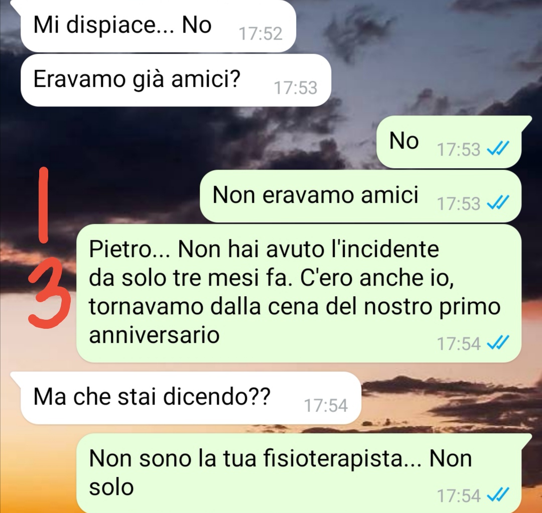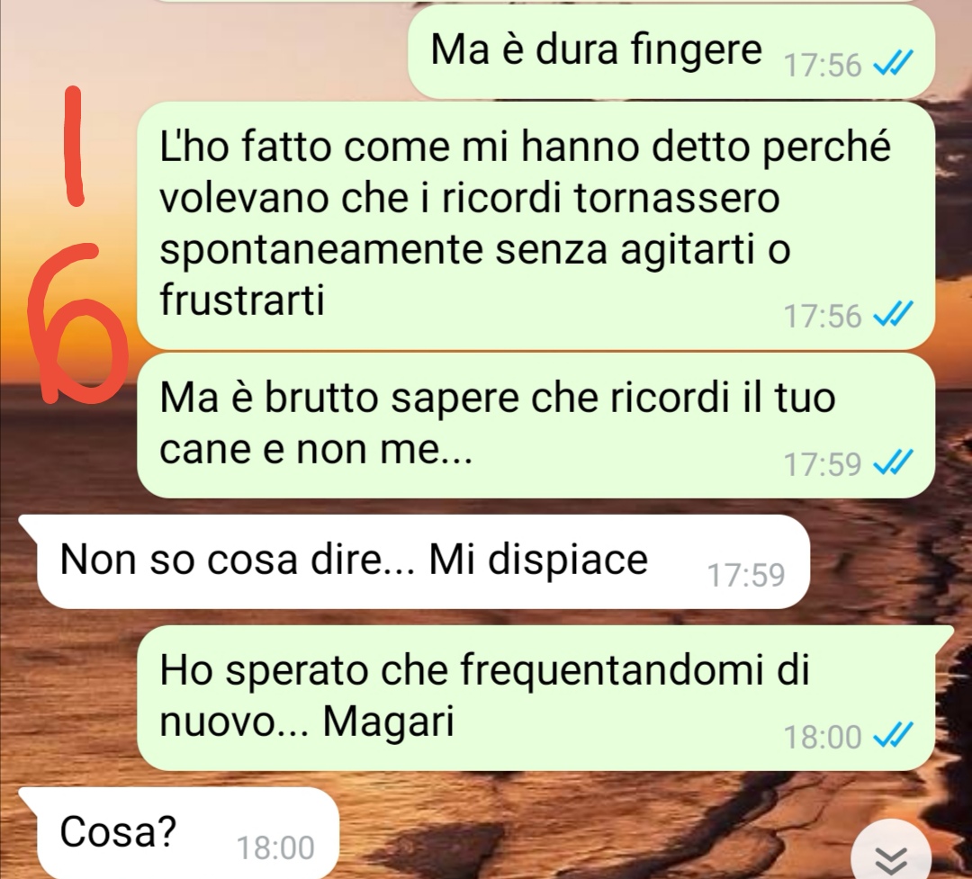 Sono trascorsi complessivamente tre mesi dall’incidente e, nonostante l’approccio delicato iniziale, di recente il medico curante ha stabilito che è arrivato il momento per Pietro di iniziare a recuperare la memoria e migliorare le sue interazioni sociali. È in questo contesto che la follower Alice ha preso una decisione importante, scegliendo di inviare un messaggio al suo paziente per chiedergli qualcosa di specifico.
