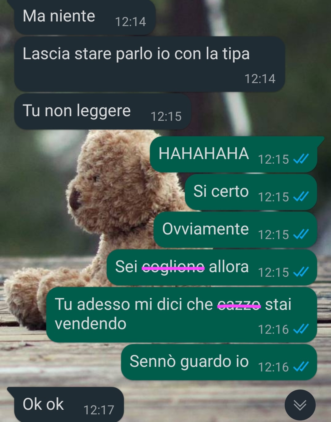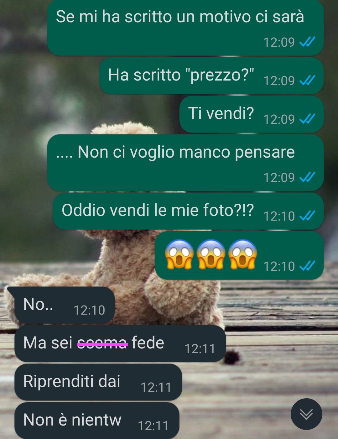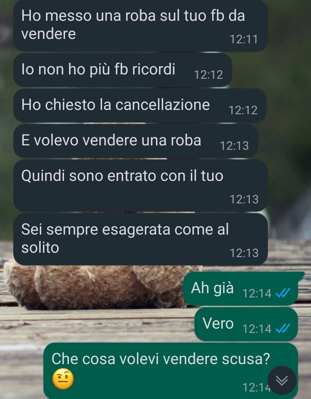 La nostra fan Federica lavora in una piccola azienda della sua città, dove ha un impiego stabile e apprezza in particolare la possibilità, ogni tanto, di svolgere il lavoro da casa. Questo le consente di gestire alcune faccende personali o commissioni urgenti durante la giornata. Condivide una conversazione avvenuta con il suo ragazzo, Ettore, con cui sta attraversando un momento complesso della relazione.