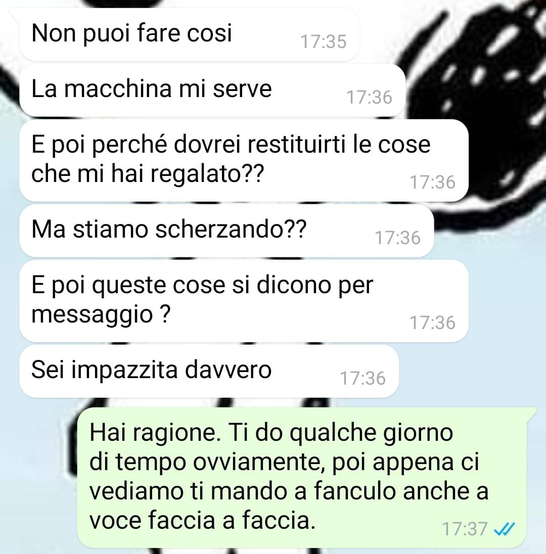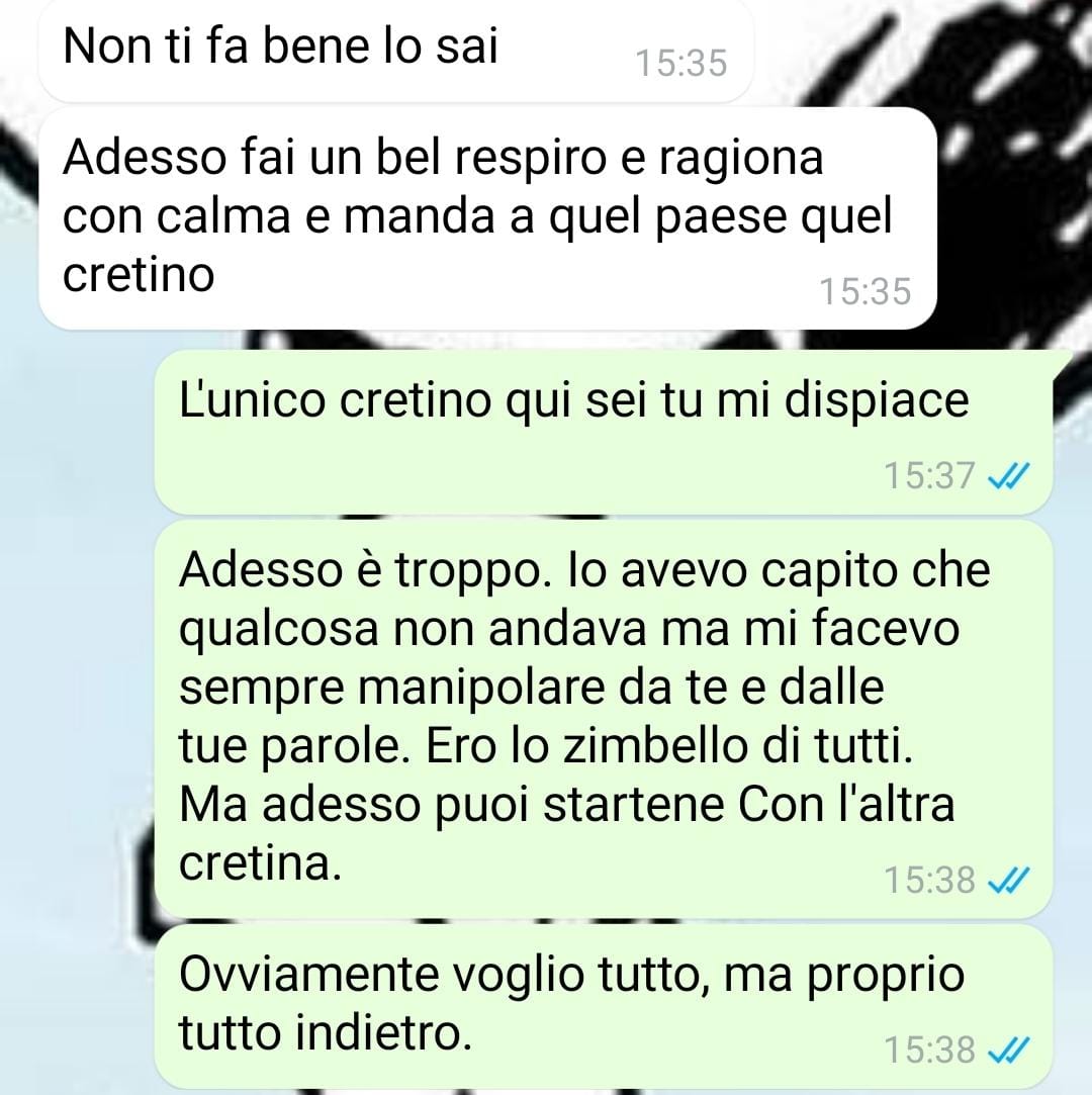 Per un periodo, si è ritrovata a essere remissiva e a tollerare tutto, convinta di essere lei il problema e di non valere abbastanza per essere amata da qualcuno diverso da lui. Questo atteggiamento, a posteriori, la fa vergognare, ma ammette che in quel momento era intrappolata in un circolo vizioso di svalutazione e insicurezza.
