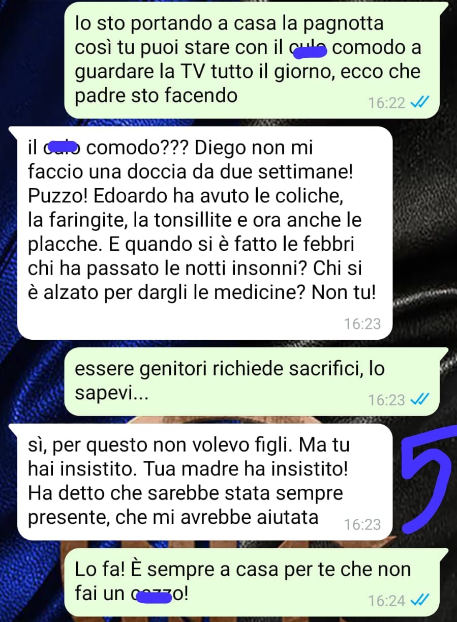 Per Diego, la nascita del figlio ha rappresentato una gioia immensa e un’occasione di unione per la famiglia. Tuttavia, ha iniziato a notare un cambiamento significativo nell’atteggiamento della moglie. Secondo quanto racconta il nostro follower, Sonia appare sempre più nervosa, distante e trascurata sia nell’aspetto che nei modi. La percezione è quella di una persona che trova sempre qualcosa di cui lamentarsi, risultando spesso scostante e poco collaborativa nella gestione quotidiana.