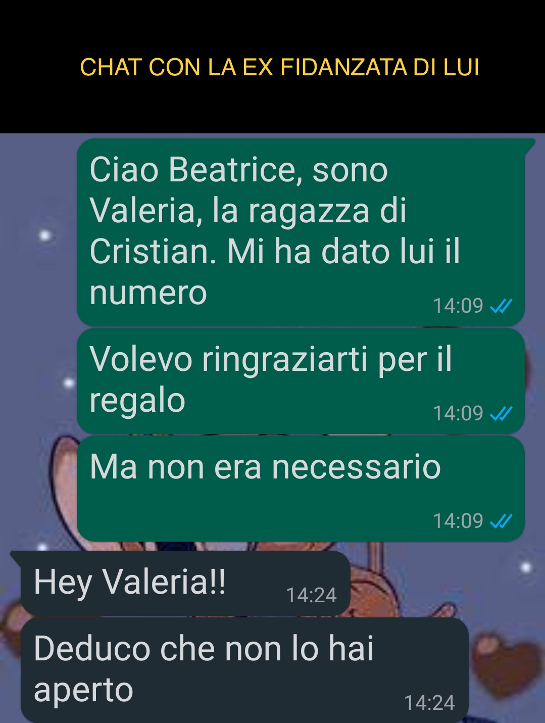 Il tutto ha avuto inizio durante una giornata apparentemente normale, quando Valeria si è recata a casa del suo ragazzo Cristian per portargli la spesa durante la pausa pranzo, dato che lui non aveva potuto occuparsene personalmente. La nostra amica aveva deciso di fargli questo favore senza immaginare quello che l’aspettava. Una volta arrivata nell’appartamento, il suo sguardo è stato catturato da un piccolo pacchetto regalo posizionato sulla scarpiera dell’ingresso.