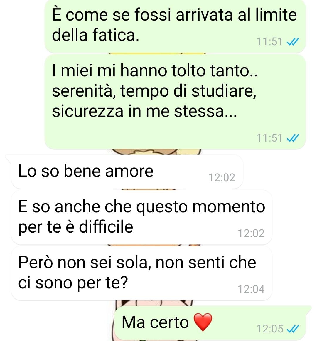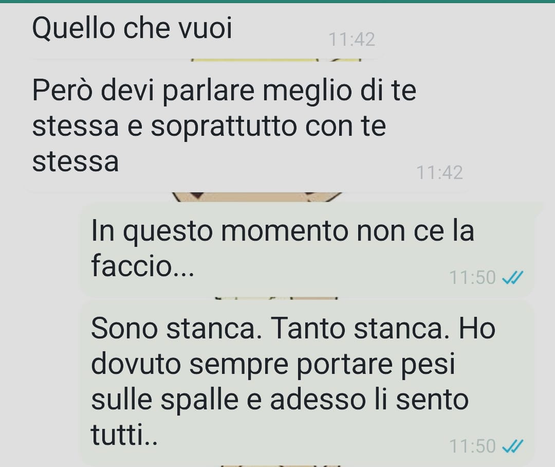 La nostra fan ha voluto raccontare un momento molto delicato della sua vita, che arriva dopo un periodo già segnato da esperienze difficili e complesse. Si presenta come una persona che ha sempre cercato di affrontare la vita con positività, nonostante un passato segnato dalla presenza di genitori tossicodipendenti, l’affido in diverse famiglie e il passaggio in una comunità per minori.