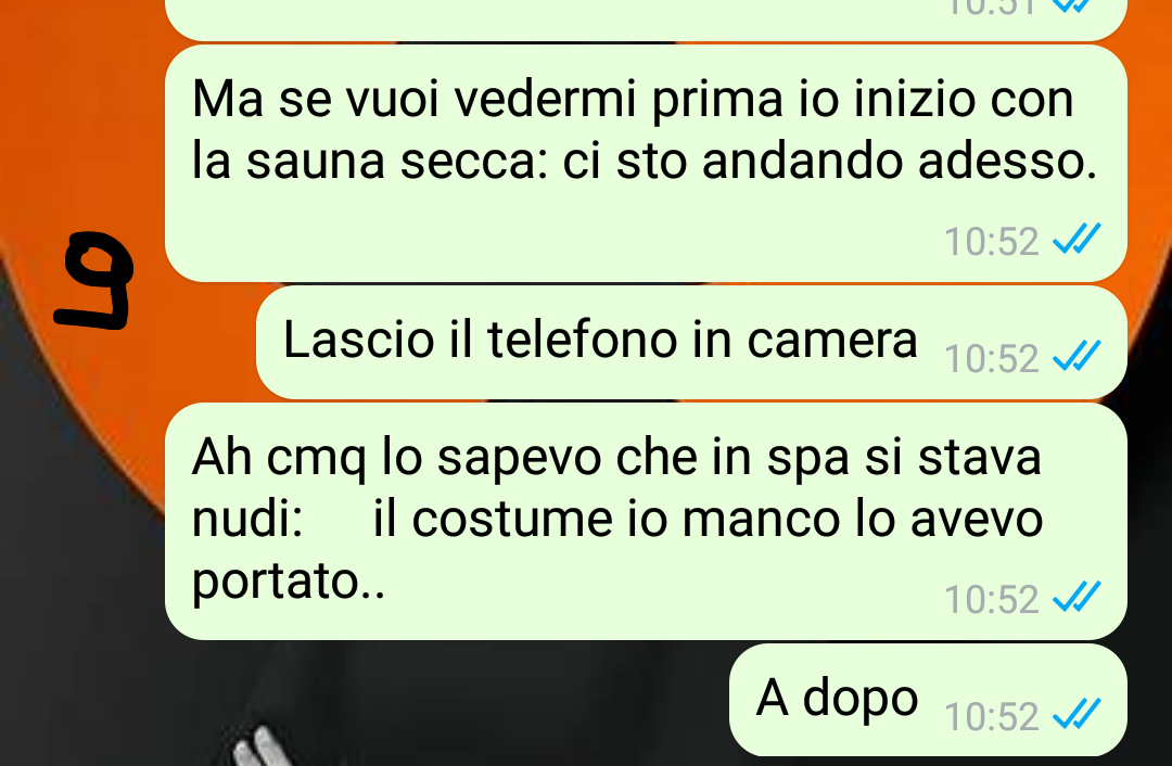 All’inizio, racconta la nostra fan, questo comportamento le sembrava quasi curioso e in qualche modo le strappava anche un sorriso. Con il passare del tempo, però, la situazione ha iniziato a diventare sempre più fastidiosa. L’amica spiega che la questione è emersa ancora più chiaramente durante un episodio accaduto la settimana precedente, quando lei e Manuele hanno trascorso insieme un fine settimana in una spa.