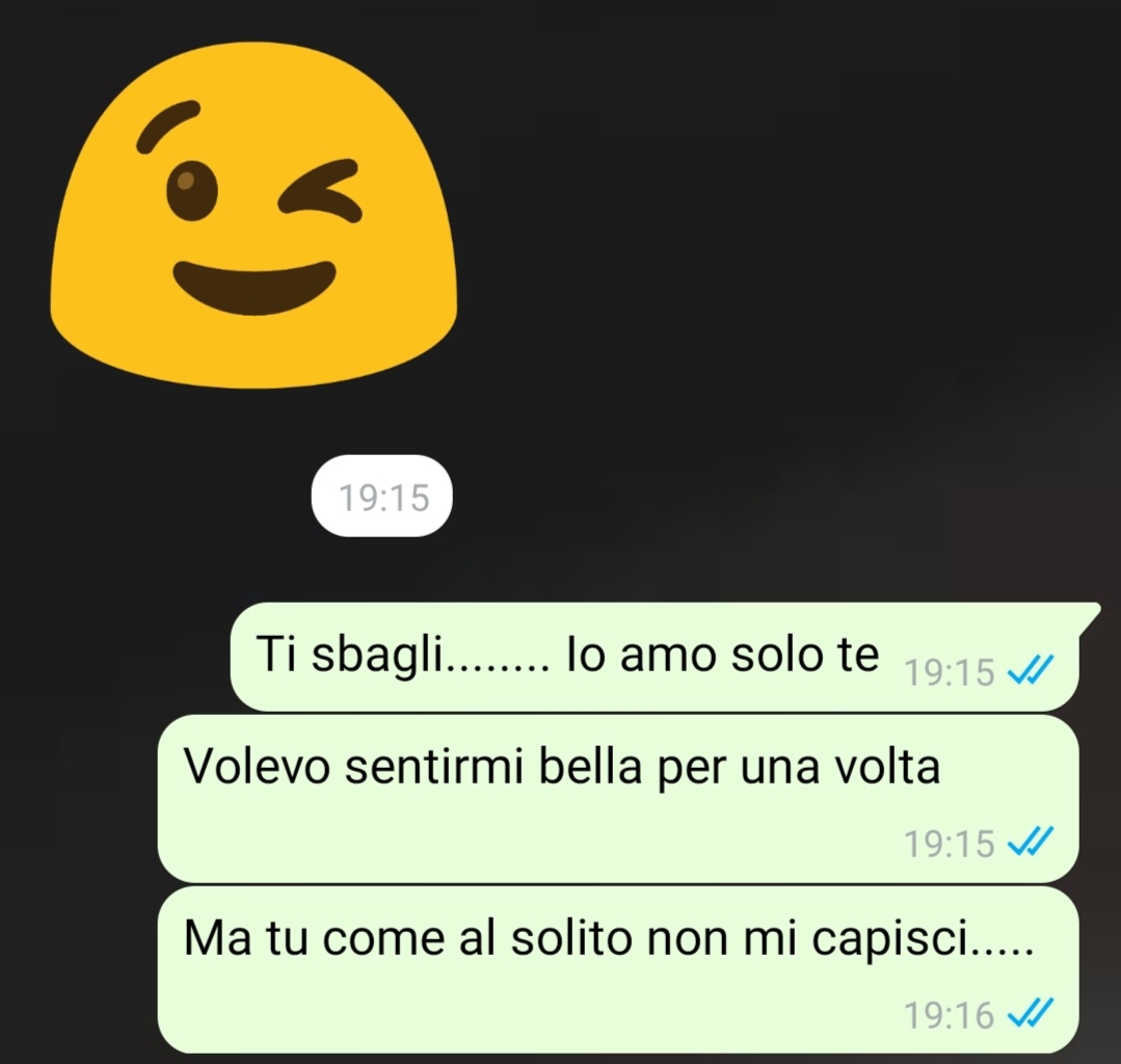 La nostra lettrice si trova quindi in una posizione dolorosa e frustrante: da una parte ama profondamente Antonello, dall’altra si sente affossata dal suo atteggiamento negativo e comincia a percepire la loro relazione come una zavorra. Ha allegato la chat dello scontro avuto con lui, sperando di trovare una risposta alla domanda che la tormenta: è possibile crescere e migliorarsi in una relazione in cui l’altra persona non ti supporta?