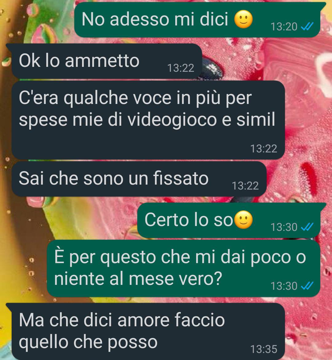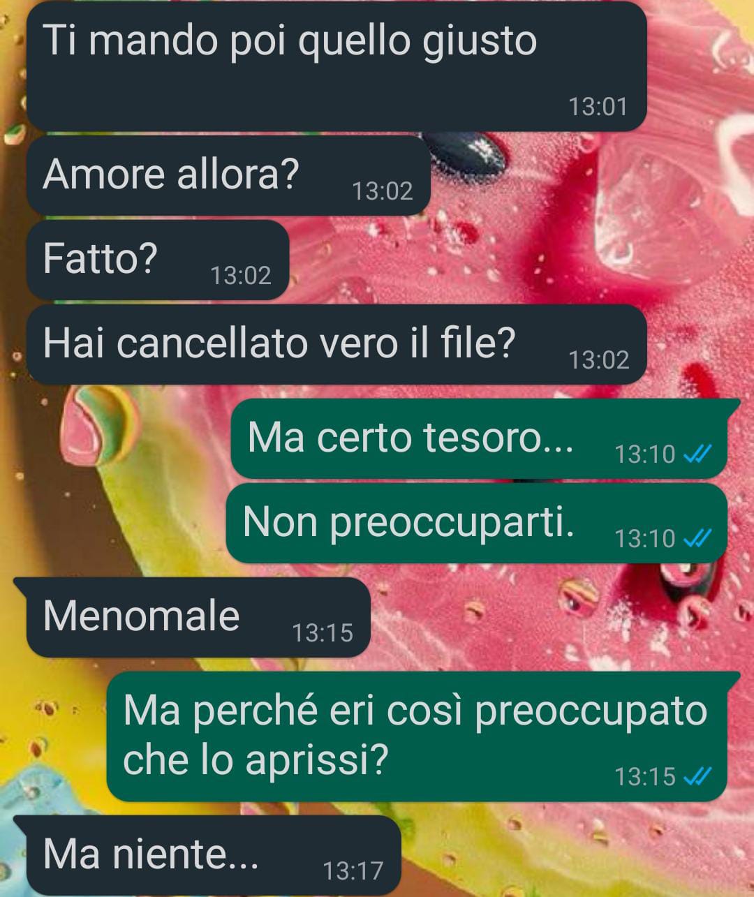 Negli ultimi tempi ho iniziato a notare strani comportamenti da parte di mio marito. Rientra a casa sempre più tardi e, quando gli chiedo spiegazioni, le sue risposte sono vaghe e decisamente strane. Allo stesso tempo dà sempre meno soldi in casa, per le spese comuni. Io ho una casa di proprietà ereditata dai miei, e lui sta da me ormai da anni, anche se aveva promesso che un giorno avremmo cercato una casa solo nostra, con un po’ più di spazio e meno problemi. Non è successo ovviamente, perché gli stava bene così e non voleva tirare fuori soldi per cambiare, dicendo che avremmo avuto un po’ più di liquidità per la famiglia. Ma sti soldi risparmiati dove stavano andando ultimamente proprio non lo sapevo… la situazione economica stava peggiorando e io dovevo fare sempre un po’ più di sacrifici. Ogni volta che provavo a parlarne con lui, cercava di tranquillizzarmi con spiegazioni superficiali, alimentando i miei sospetti.Oggi ho ricevuto un messaggio che mi ha aperto gli occhi. Mio marito ogni mese mi manda un Excel con le spese che ha previsto nel mese, niente di che… a lui piace segnarsi le cose. Quindi quando ho visto il messaggio di per sé non mi sono allarmata. Però poi mi ha scritto, dicendo insistentemente che mi aveva inviato per errore quella mail, e di cancellarla senza aprirla. Non capivo perché era così insistente e questa sua ansia mi ha insospettito ancora di più.Adesso Mi trovo in una situazione difficile e incerta, e non so più di chi fidarmi. La mia mente è piena di domande senza risposta e devo capire cosa sta realmente accadendo nella nostra famiglia. Ciò che è certo è che le cose cambieranno… e mi serve tutta la mia lucidità per poter affrontare il futuro con serenità e prendere le decisioni giuste.
