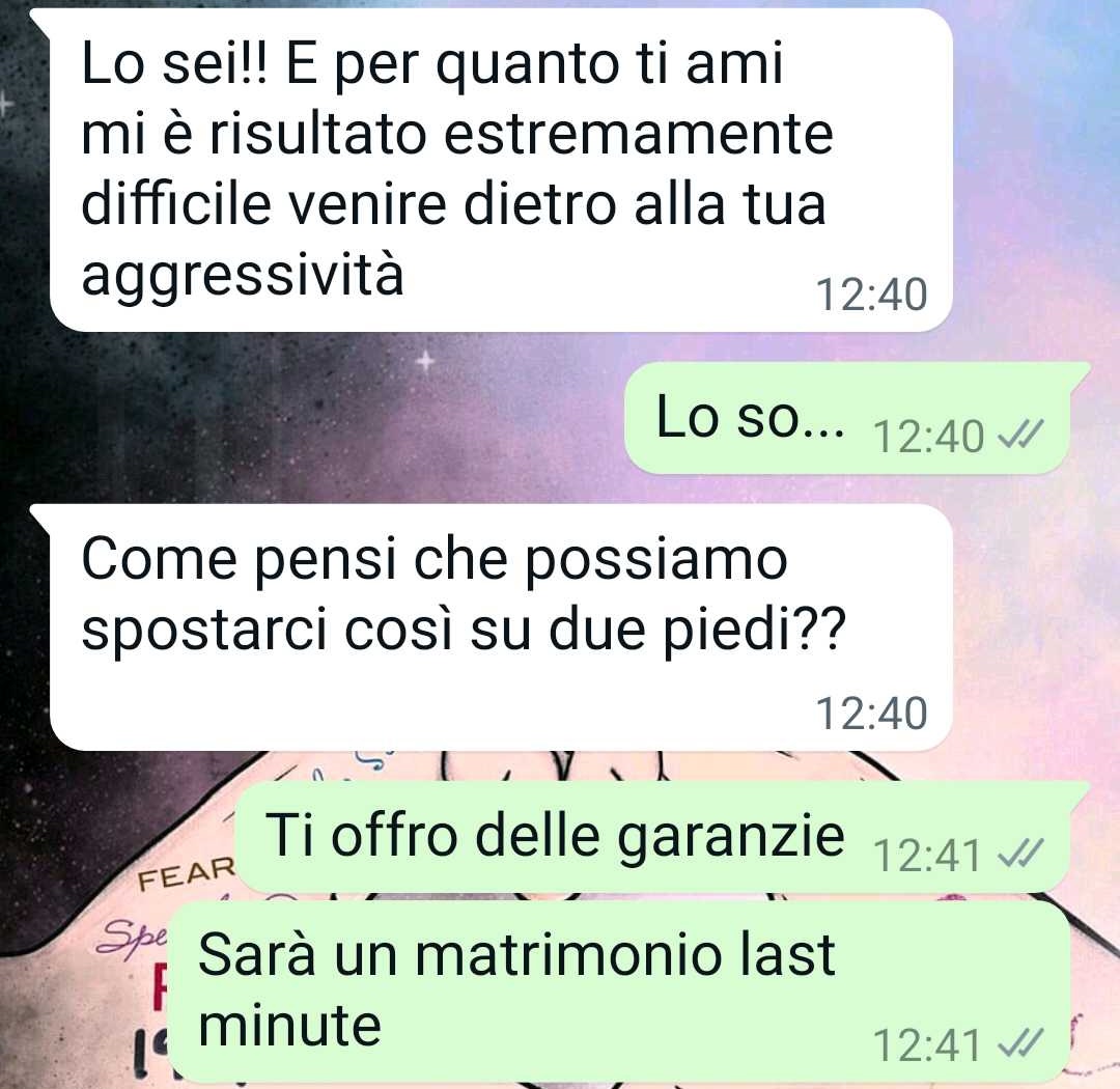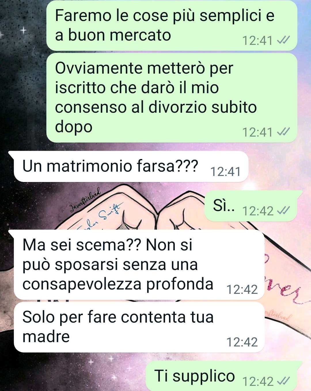 Tuttavia, come racconta la nostra follower, la situazione tra lei e il compagno non è semplice. Ci sono problemi significativi all’interno della coppia, che lei stessa ha cercato di spiegare allegando alcune conversazioni. Nonostante questo, la nostra fan si sta impegnando con tutte le sue forze per realizzare questo progetto, anche se riconosce quanto tutto sembri folle e dettato dalla disperazione.