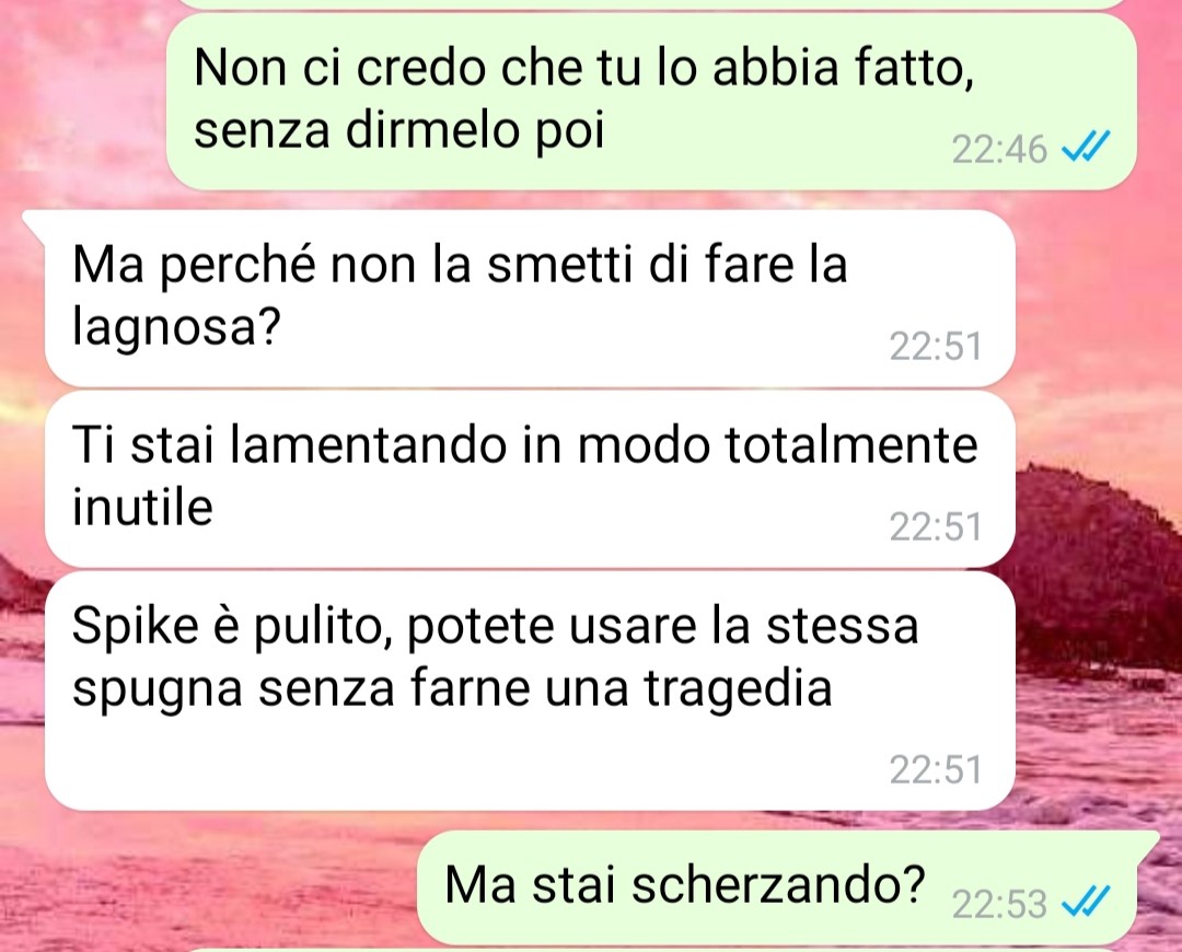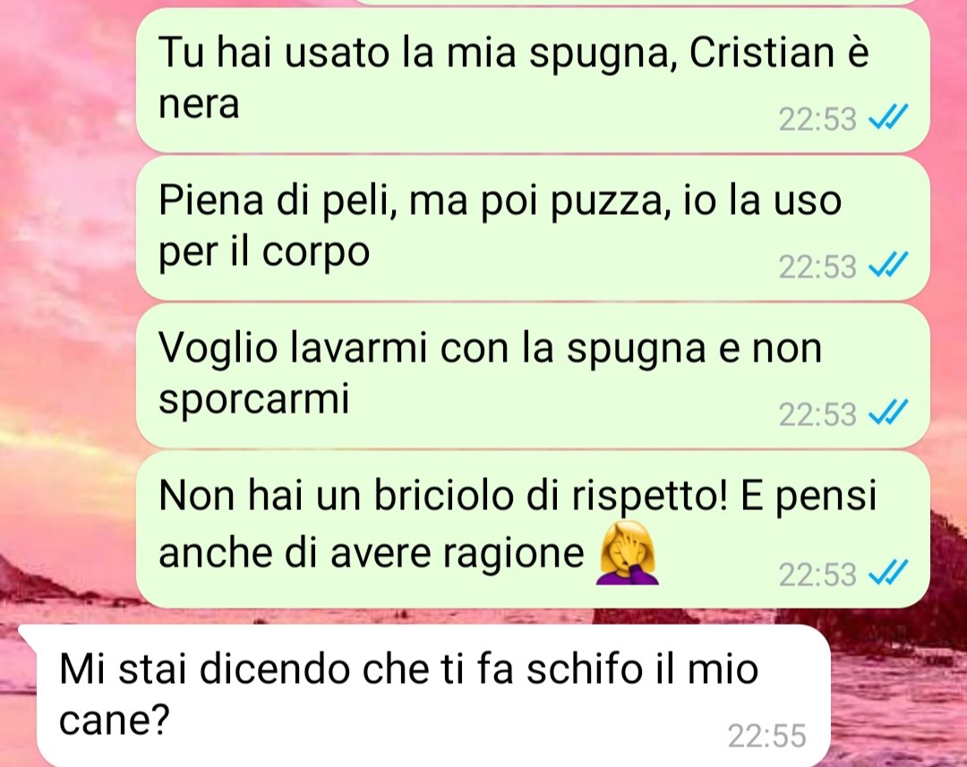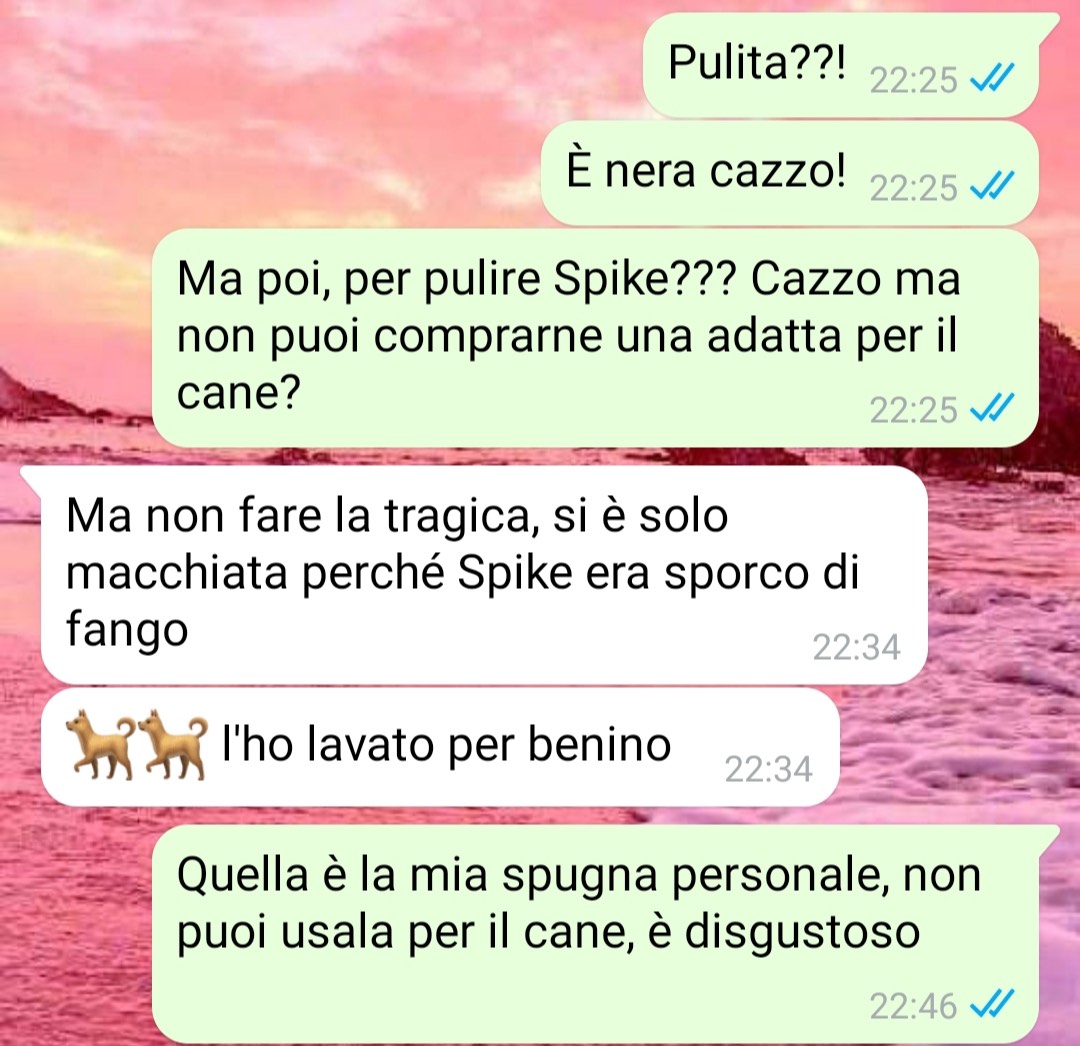 “Salve Commenti Memorabili, mi chiamo Chiara e sono fidanzata con Cristian, il classico “uomo che non deve chiedere mai”. Lui ha un cane, che considera una specie di migliore amico, lo porta sempre con sé e nessuno può impedirglielo. Qualche mese fa abbiamo iniziato la convivenza in affitto, anche se lui passa molto tempo fuori casa in giro con gli amici. Da poco ho notato la mia spugna nel piatto doccia super sporca, marrone e piena di peli, così gli ho chiesto spiegazioni. E ho scoperto che l’aveva usata per pulire il suo cane, senza dirmi niente. Ma la cosa più sconvolgente è ciò che dice dopo. Così, ho deciso di scegliere me, e soprattutto la mia dignità!”