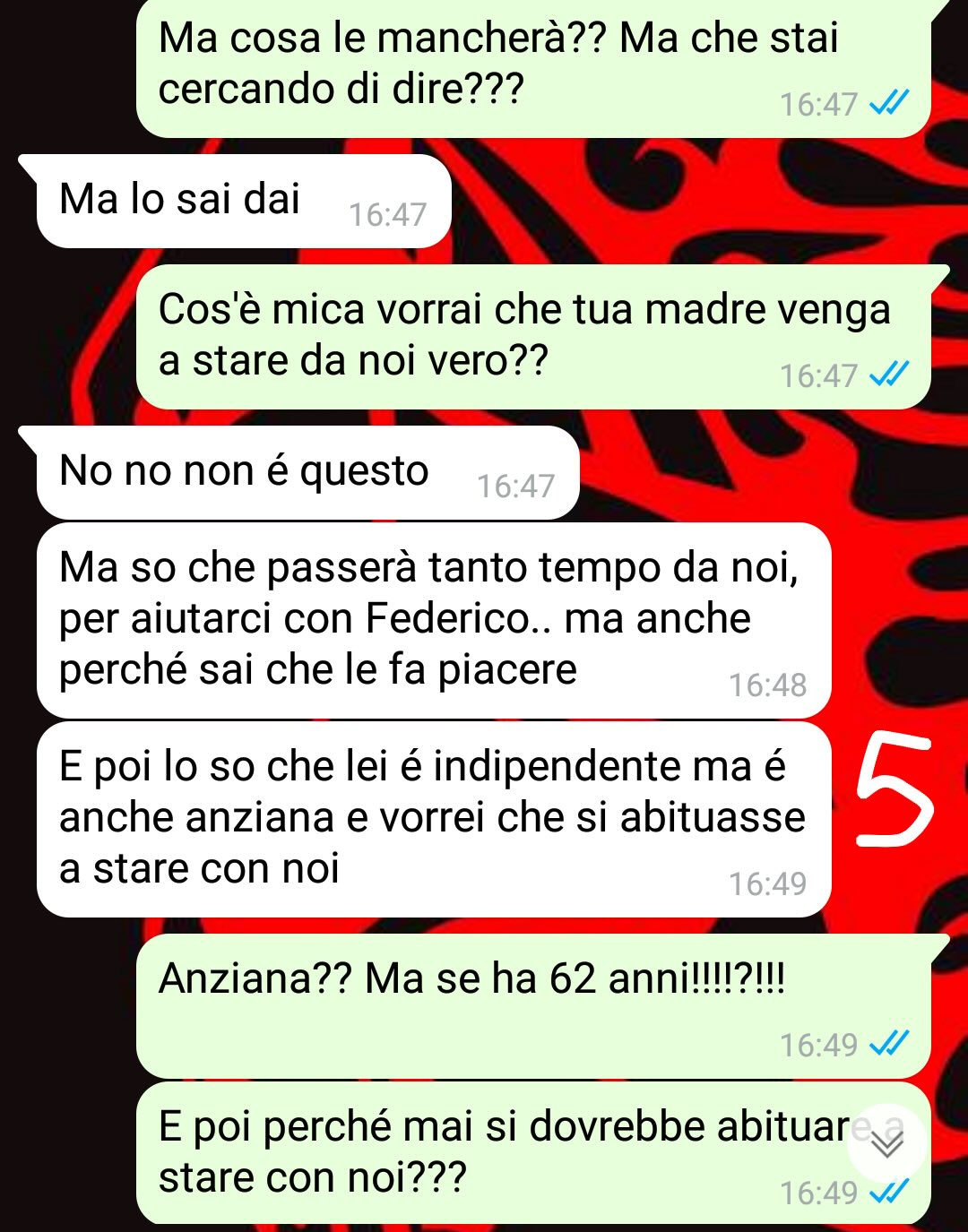 La nostra fan descrive Concetta come una figura difficile da sopportare. Nel suo racconto viene dipinta come la classica suocera da barzelletta: pettegola, invadente, insistente e costantemente pronta a mettere il naso in ogni questione. L’amico sottolinea inoltre di avere la sensazione di non essere mai stato apprezzato dalla suocera, arrivando a percepire un vero e proprio atteggiamento di ostilità nei suoi confronti.