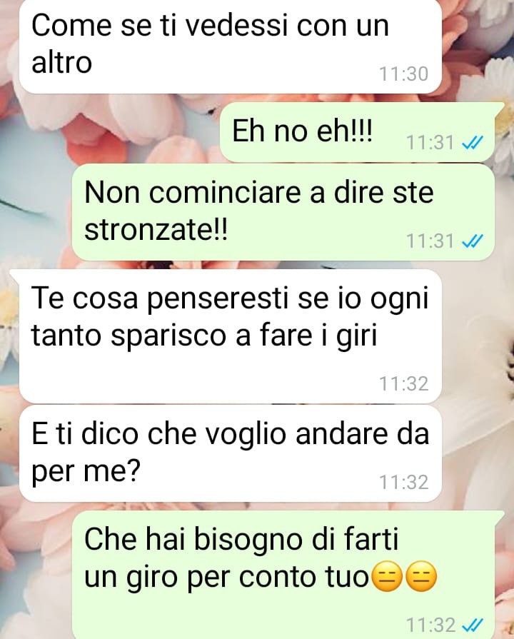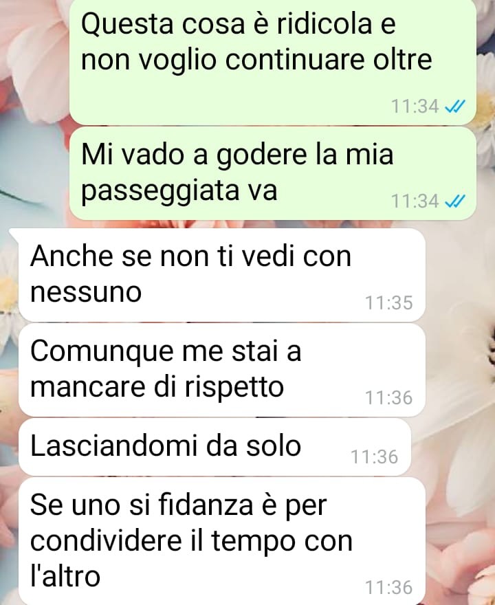 Durante una giornata trascorsa in una città vicina, sul mare, ha deciso di inviare una foto al suo compagno per mostrargli il posto in cui si trovava. Un gesto semplice, spontaneo, che però ha scatenato una reazione del tutto inaspettata. Racconta che il ragazzo non ha apprezzato l’iniziativa, accusandola di comportarsi in modo scorretto.