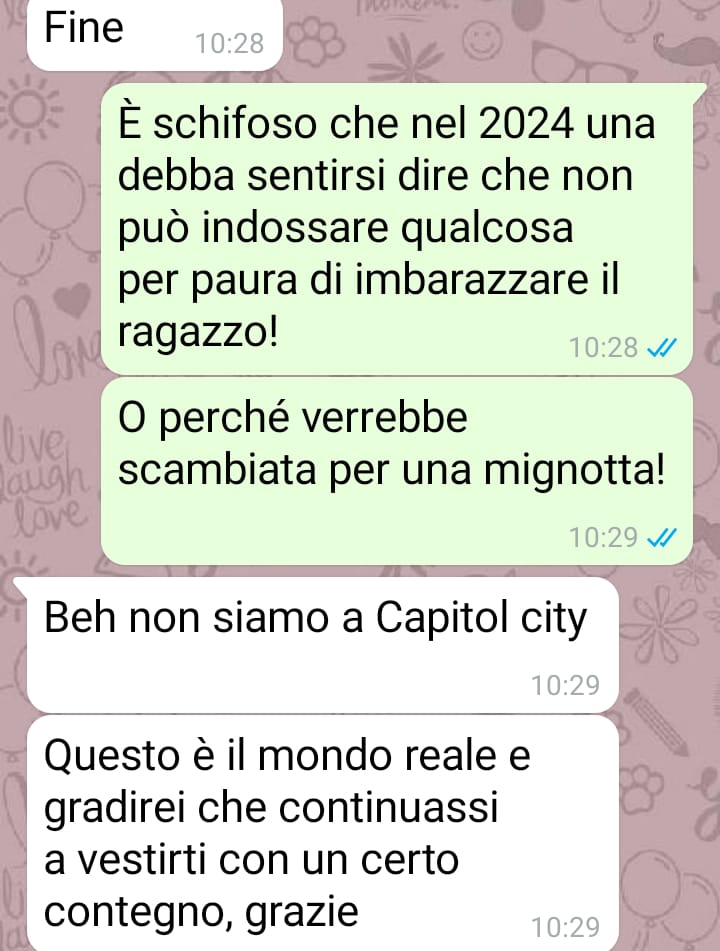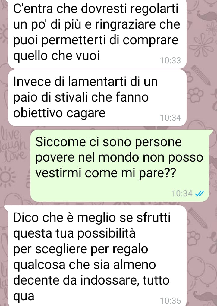 Nella conversazione che ha scelto di condividere, si evidenzia chiaramente lo scontro tra il desiderio personale di affermare il proprio stile e la visione limitante di chi, pur amando, tende a imporre gusti e preferenze. Una situazione che, per Caterina, rappresenta un problema più ampio: quello della libertà individuale all’interno di una relazione. Una libertà che lei considera fondamentale e che rivendica con fermezza.
