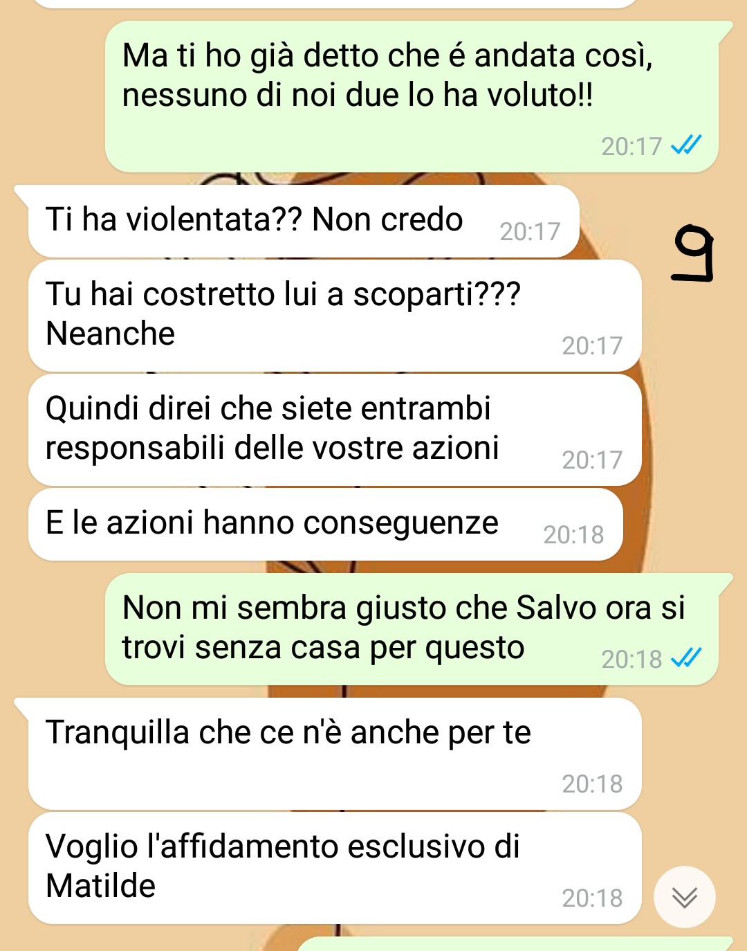 Ora, che il marito ha una nuova compagna con cui desidera risposarsi, la situazione sembrava essersi stabilizzata. Ma nei giorni scorsi lui ha scoperto chi fosse in realtà Salvo, e da quel momento si è scatenato il caos. Il nostro follower racconta che, nonostante capisca il suo shock, non sente di poter fare nulla a riguardo: le cose sono andate così e ormai non si può tornare indietro.
